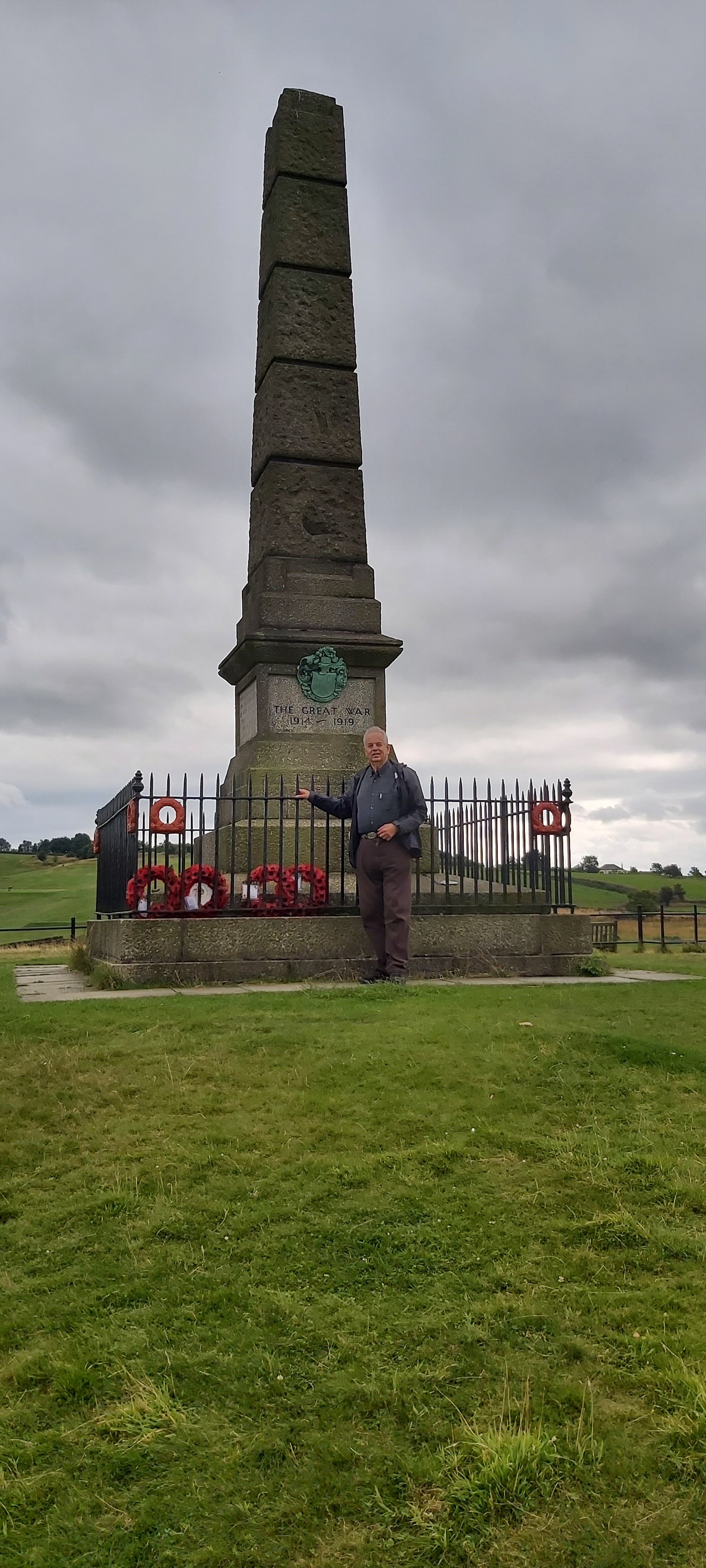 I thought very little about what I have just written about yesterday. I was to be taken along an unfamiliar but very popular walk near Glossop – Werneth Low, a gentle hill from where magnificent panoramic views of distant Manchester, Ashton Under Lyne, Oldham and other surrounding towns can be had. A path follows the circumference of the hill, but today, we covered probably just a mile in each direction, as far as a WW1 cenotaph. This area is more like a park with innumerable walking routes to explore, and park benches to sit quietly on.