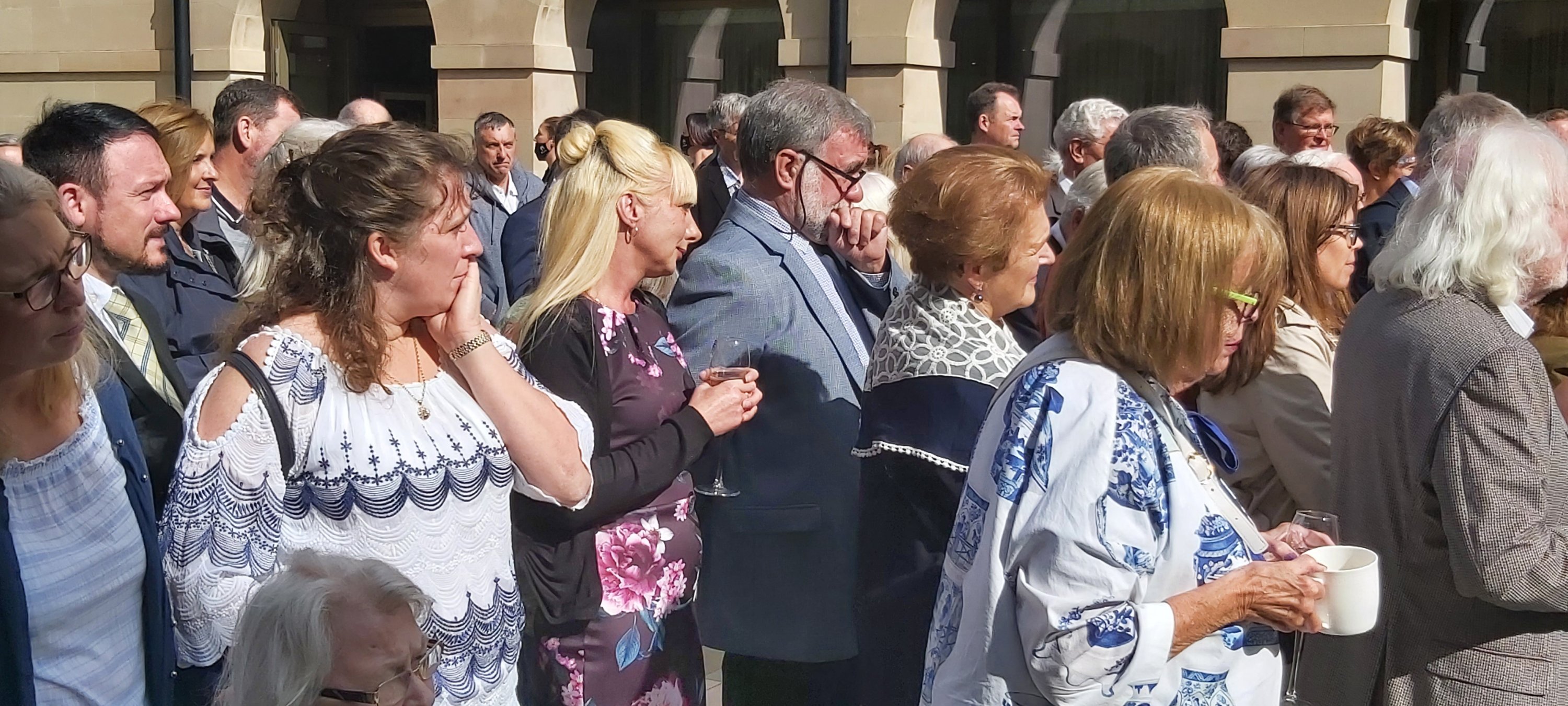 It was only slightly cool for the gathering of people who had volunteered at the first post-lockdown Festival. All extremely pleasant and convivial with the signature Friends’ catering as well as a generous bar, in the most attractive and extensive garden of the host.