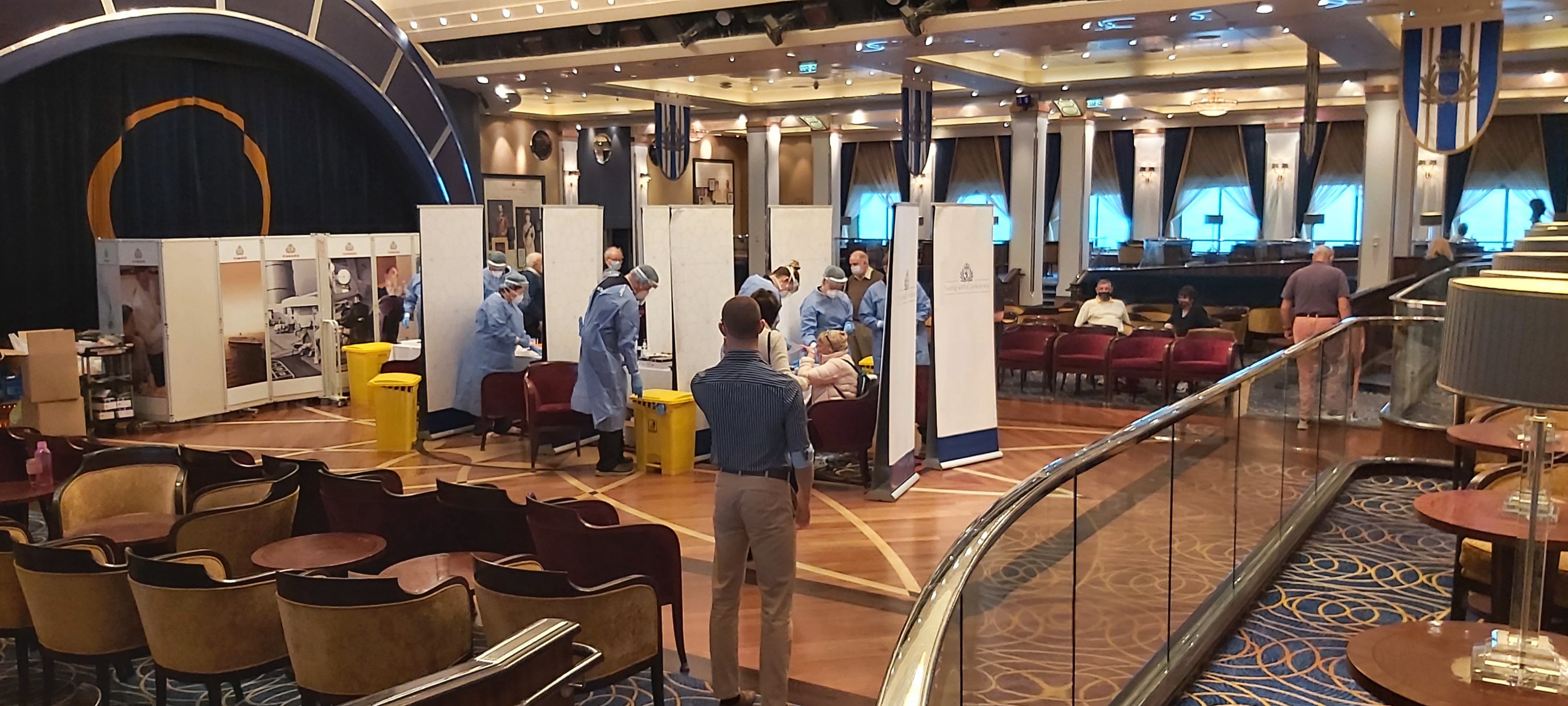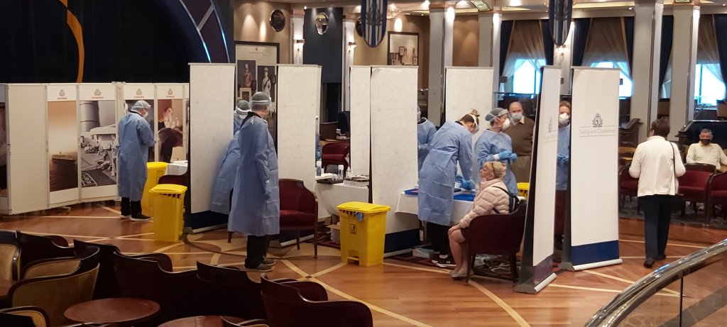 Dr. Stephen Payne, who I understand hails from Catford, and designed the Queen Mary 2, is on board to give a series of lectures. It was refreshing to hear a measured and very informative account of the history of Titanic from planning to its premature end. Social distancing ensured seating was inadequate. However, his first lecture was well worth standing through. On Thursday, his subject will be the Lusitania and Mauretania.