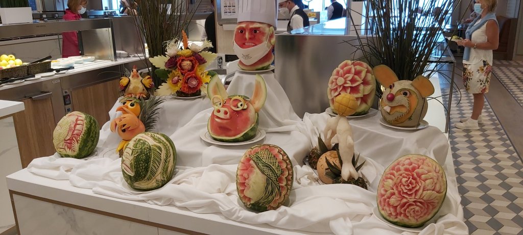 We are still in port, but expect to be departing within the hour. And, just as I guessed, I have been assigned first sitting for dinner, as had travelling companion Jo, who I got to know in 2018, and on the South America trip of 2020. We both negotiated our preferred dining time of between 19.45hrs and 21.20hrs, after trying out 1st sitting tonight. I felt we were slightly rushed, although the food and service was still excellent.