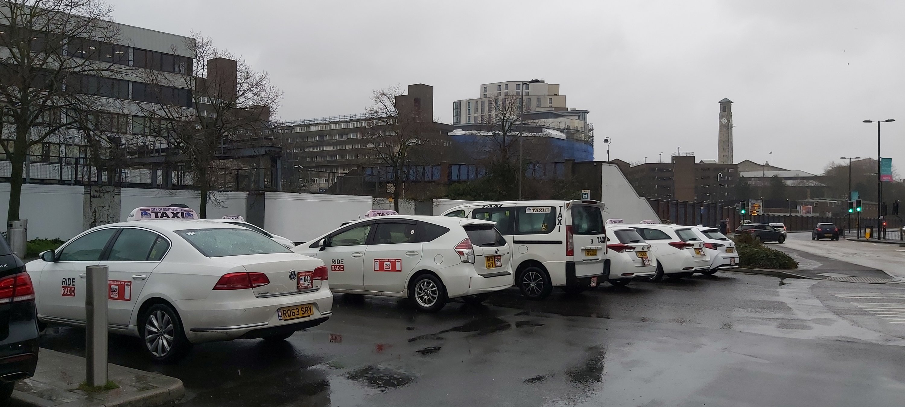 A Southern service from Southampton to Brighton, 15/2/21, around midday. A South West Trains service departs for sunny Bournemouth Rainy day in Southampton Covid testing at the Terminal.