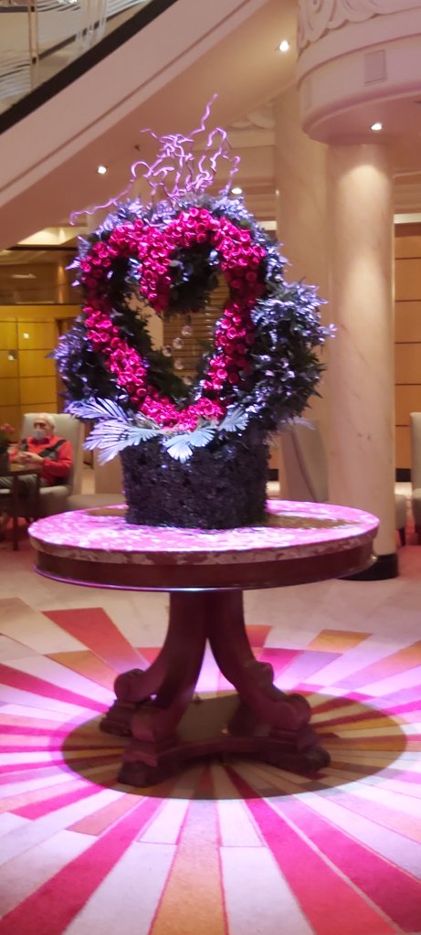 Now, to unpack. Grand Lobby flower display presumably commemorating Valentine’s Day, February 14th.