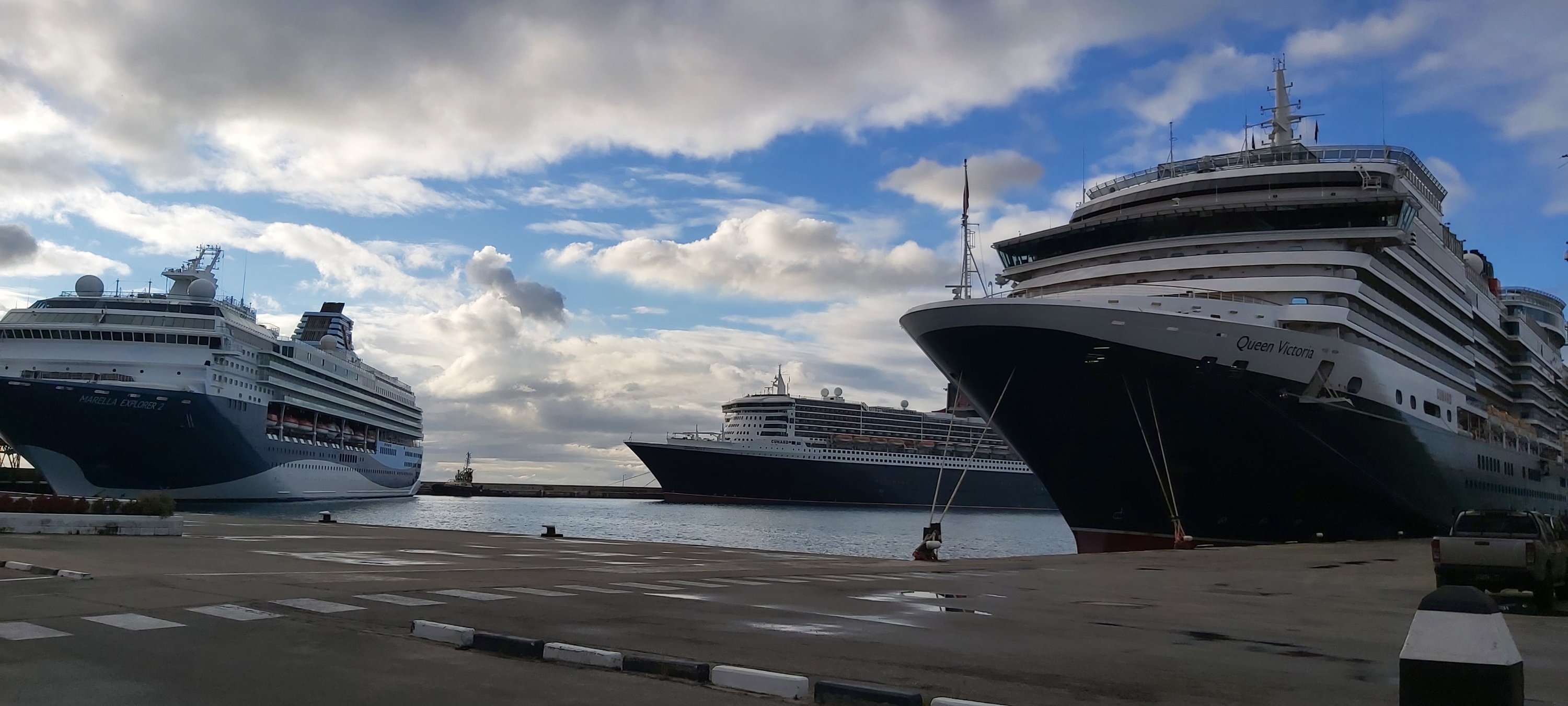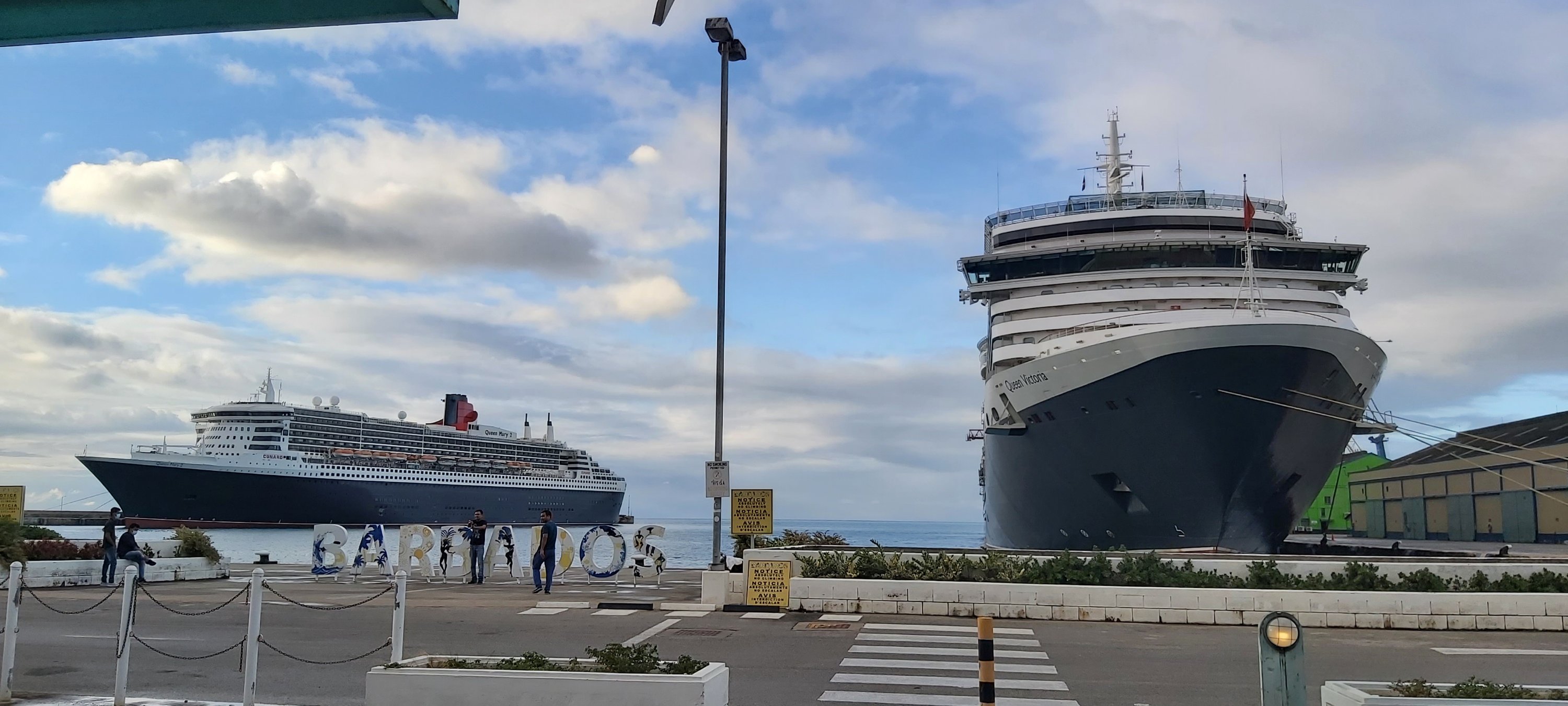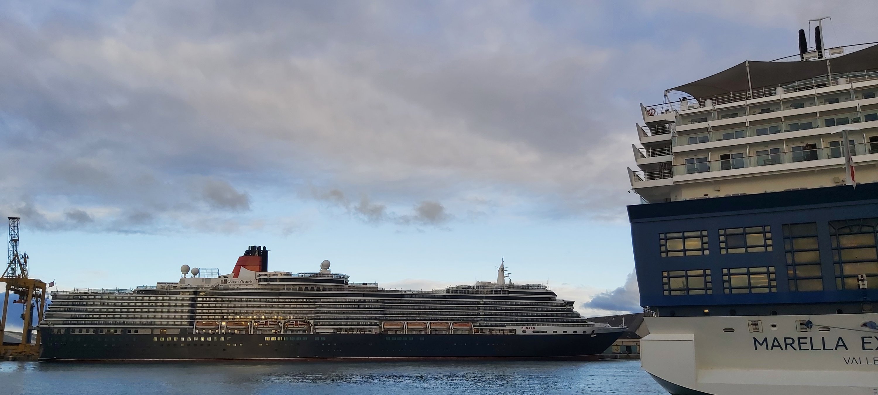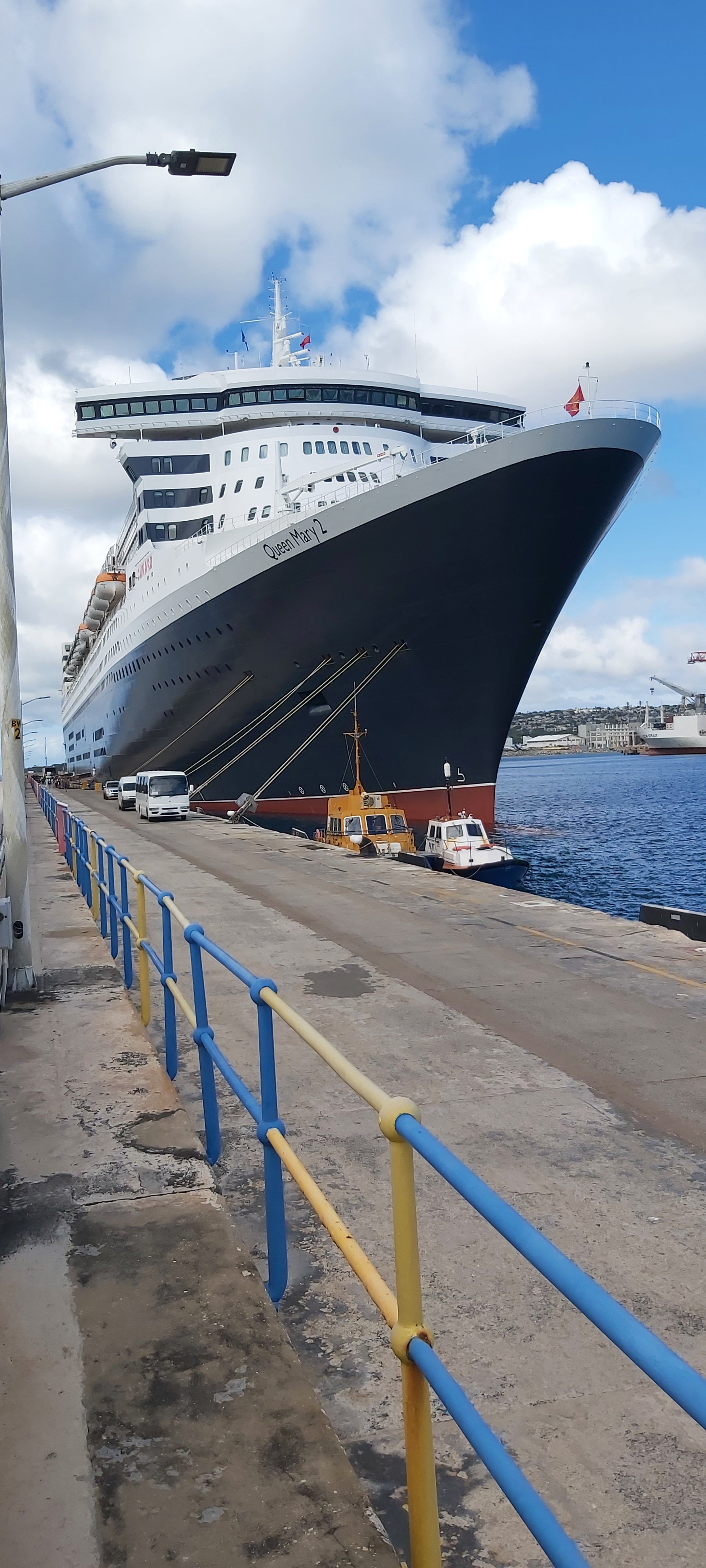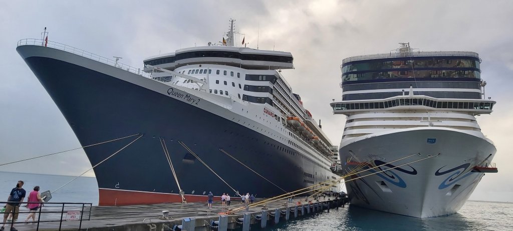 My shore excursion begins at 13.20. Despite a late breakfast of porridge and a decaff coffee, I will relax once again in the Britannia Restaurant for an early not very heavy lunch. Another TUI (formerly Thomson’s) cruise ship Mein Schiff 1 is berthed alongside QM2. This is massive cruise ship. Hopefully, I can take some decent photographs later. Here are couple taken from on board in the late morning.