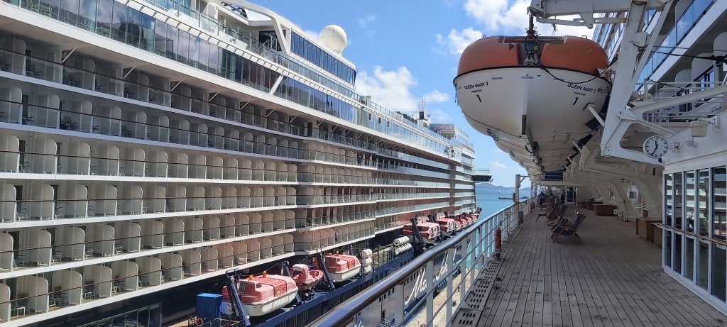 Many thanks for reading,David, 11.50, in the shade of a life boat (tender) on board QM2.
