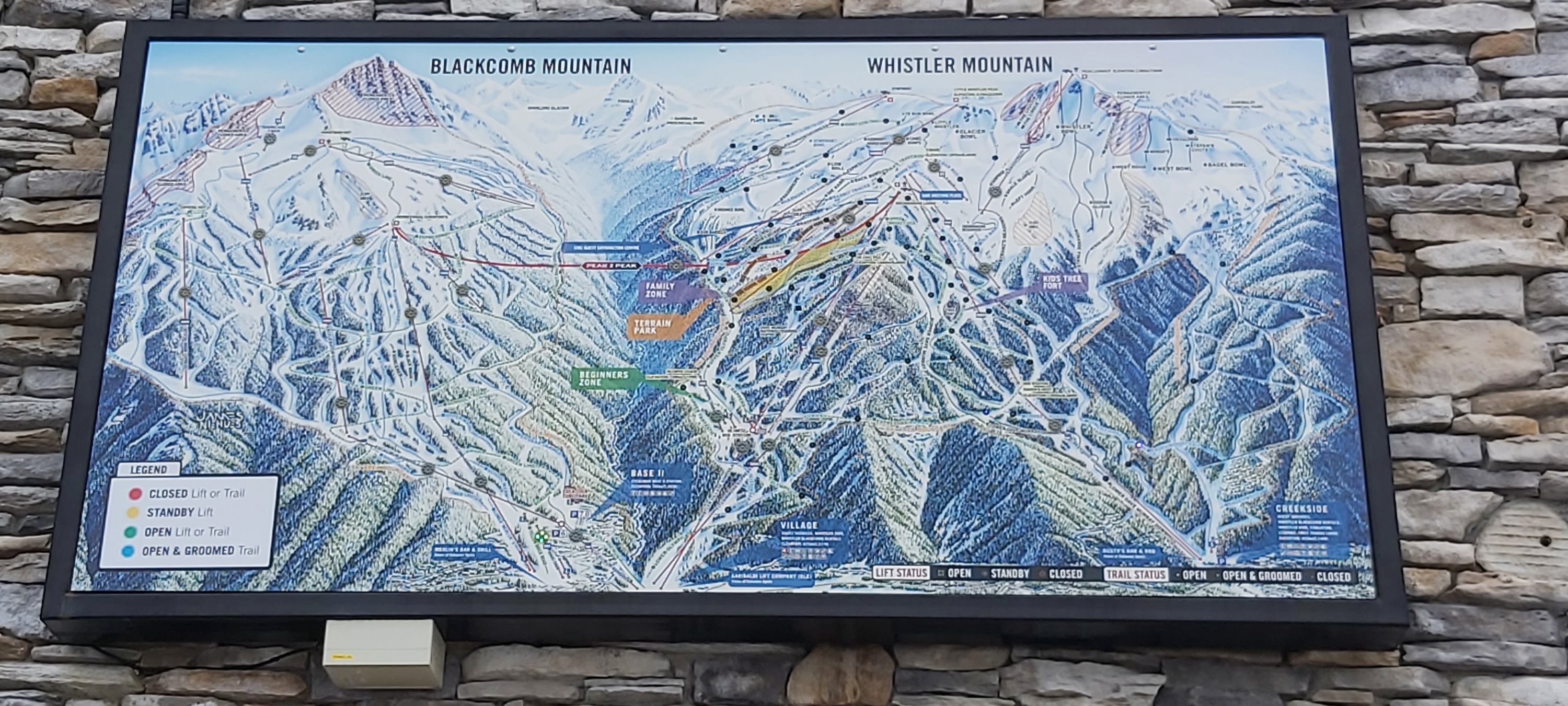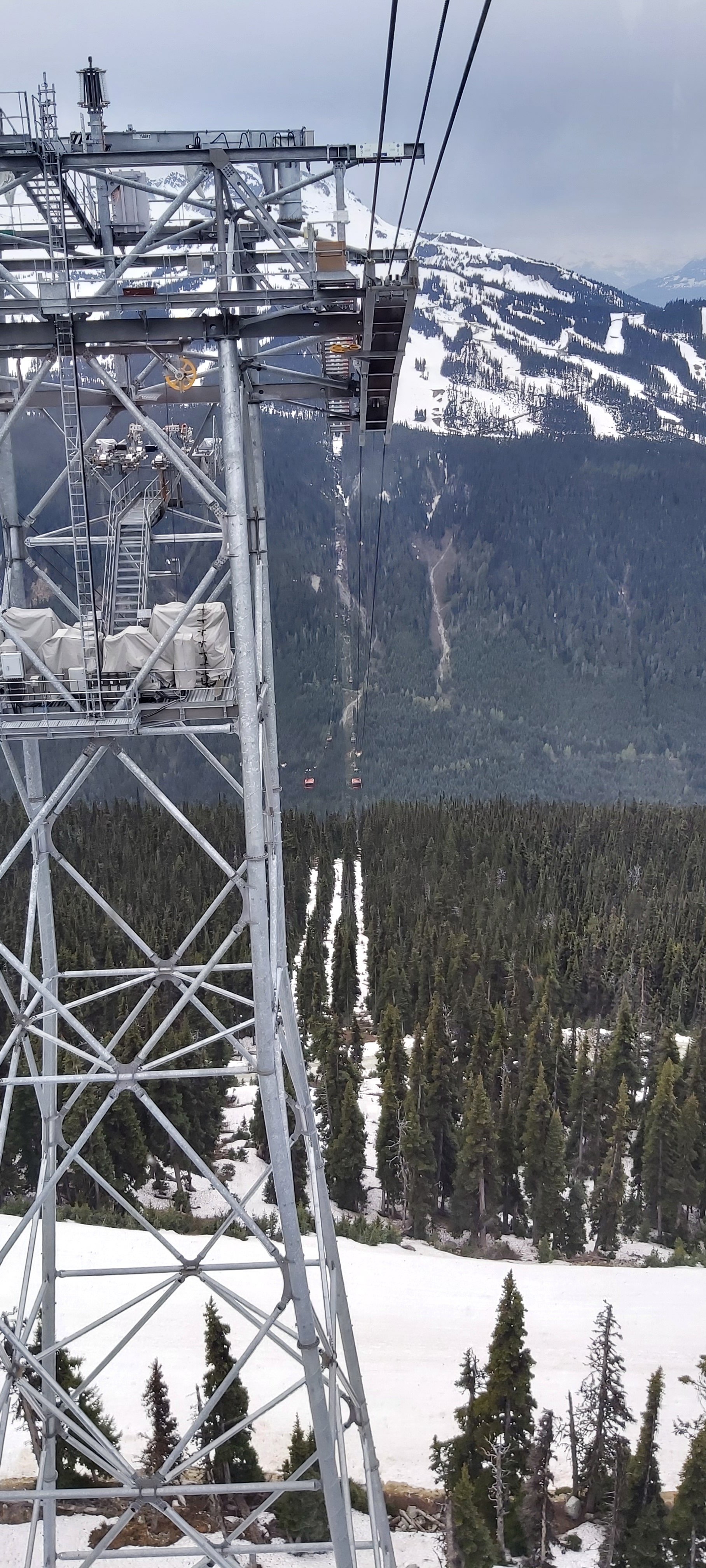 The termini of the cable cars on both Mount Whistler and Blackcomb are not at the summit as stated in Blog 795, my mistake. The summits of both are considerably higher. Nevertheless, just seeing the infrastructure of this system of cable cars has one contemplating the super human expertise and ingenuity what made such engineering possible. I felt completely at ease wobbling high above the wide expansive valley below.