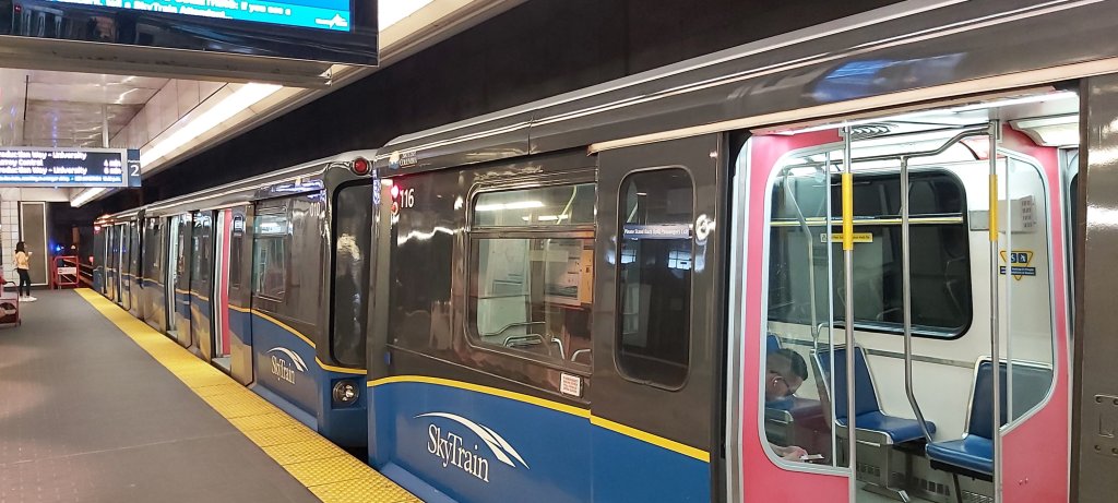 I decided to try out the Sky Train which had me intrigued when I came here three years ago. I didn’t quite realise how far Surrey Central was! I just hope I don’t have to wait long for the return service. In fact, I “bottled it” and bailed out at the penultimate station, Gateway, where a return train had just pulled in. There was time to bid farewell to the Waterfront and Canada Place, which was devoid of cruise ships. There is so much more to see and do in Vancouver; I hope the opportunity does present itself for me to come here to stay a third time. I brief glimpse of the lesser known suburbia was welcome, although with the Sky Train rather full, meaningful photography was more or less impossible. I want to ride the trolley buses next time, particularly to Stanley Park. We got rid of our trolley buses in the 1960s; I do remember the very last ones in Bradford in 1971. I still get a kick out of seeing these eco-friendly vehicles, rather like when I was first interested at age around 7!