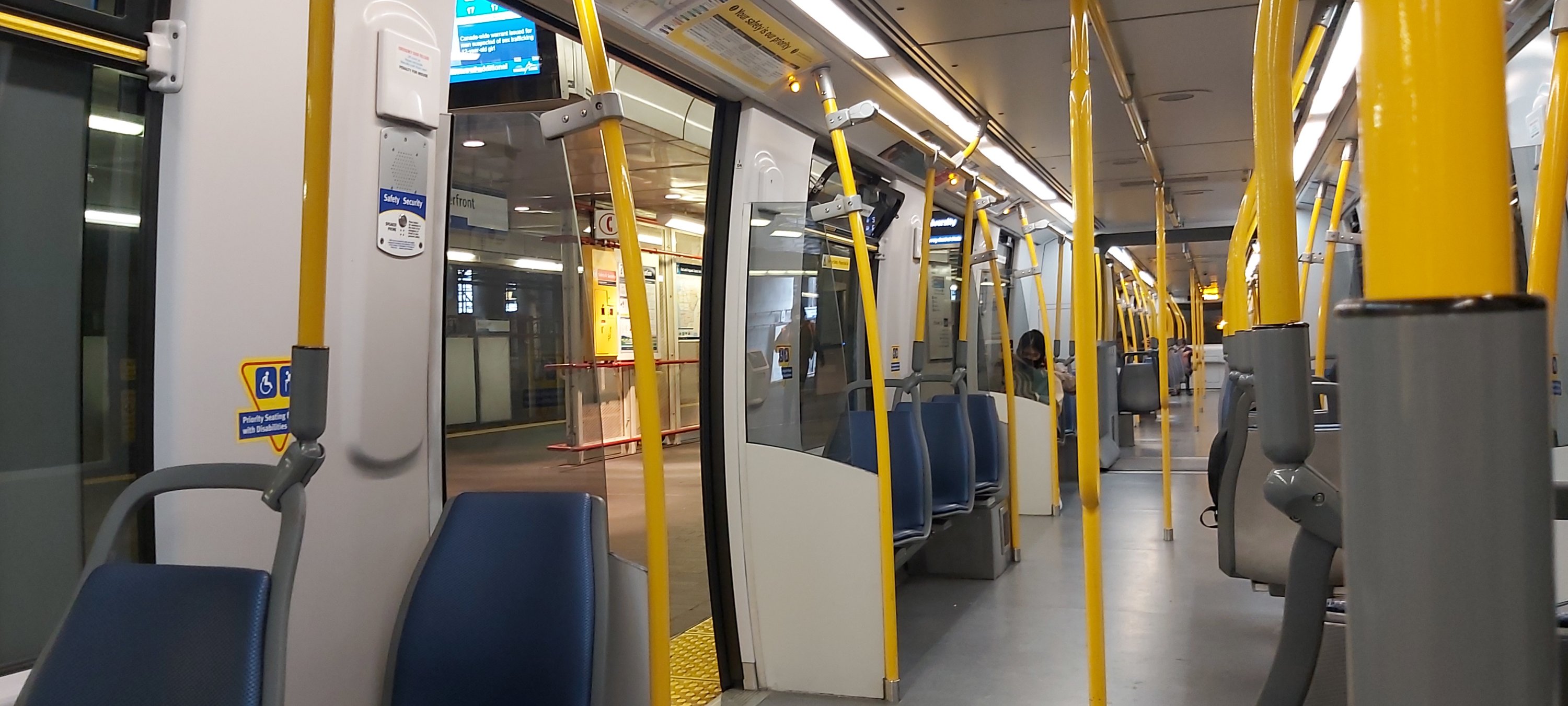 Vancouver Sky Train, outside, and inside.A couple of views from the Sky Train