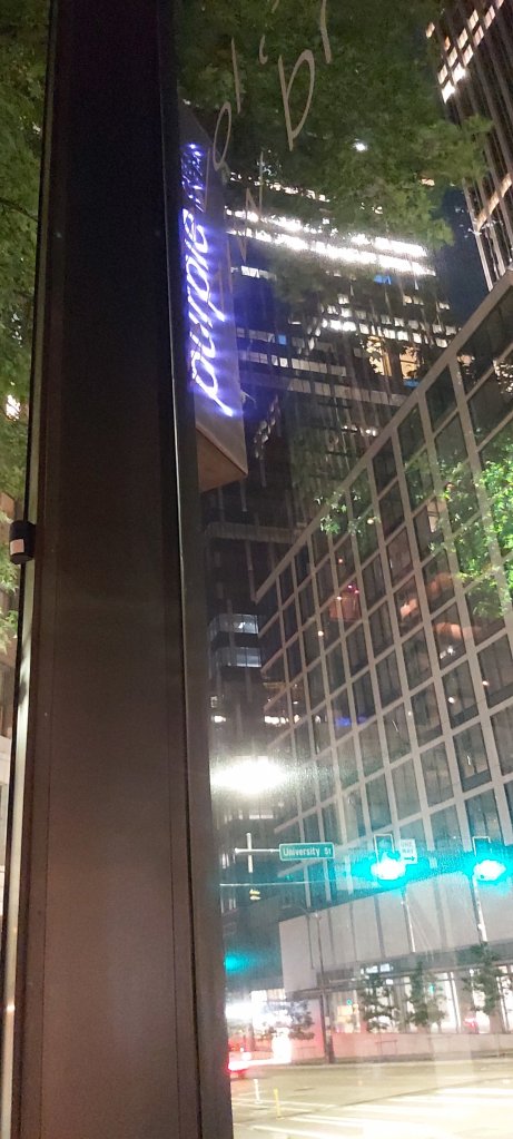 “Purple” View from the Italian restaurant at which I had a window seat.