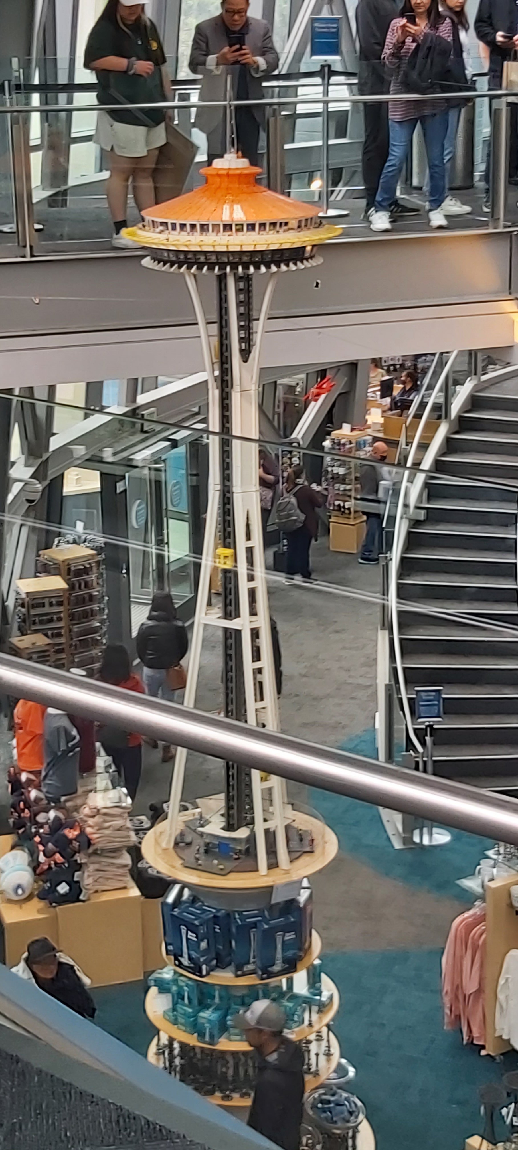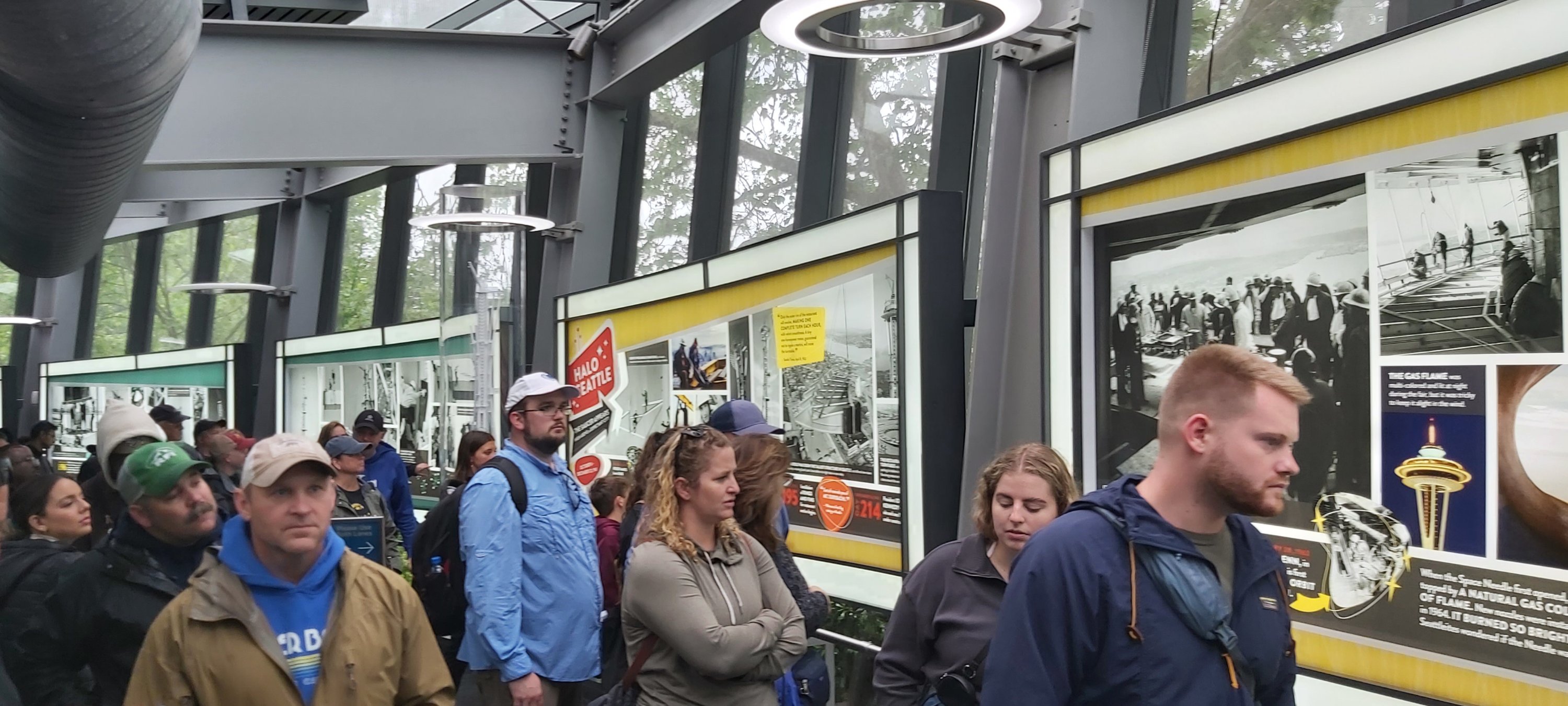 Pretty futuristic for 1962.aCrowds in line for the elevator trip to the top of the Space Needle. Made it, on foot, 10,129 steps.