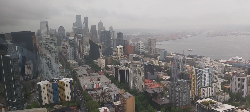 After the one hour boat trip, I started to walk along Alaskan Way, I suppose a bit like the Golden Mile in Blackpool, but not nearly as long (I don’t think). The Space Needle was where I was headed and I walked to the end of Alaskan Way where a flight of stairs and a fairly steep hill would, after walking around 45 minutes see me very close to the Space Needle. I promised myself lunch in the revolving restaurant, except that, thatship had sailed years ago, and the first ever revolving restaurant was longer in existence. I made do with a 6″ Subway baguette for lunch, before going up the tower at around 3pm. If I suddenly become sick, it will more than likely the disregard for social distancing. I had a bit of a dilemma. Do I stear clear of crowds and do nothing, or, do and see as much a possible; I don’t have plans to come back. I chose the latter.
