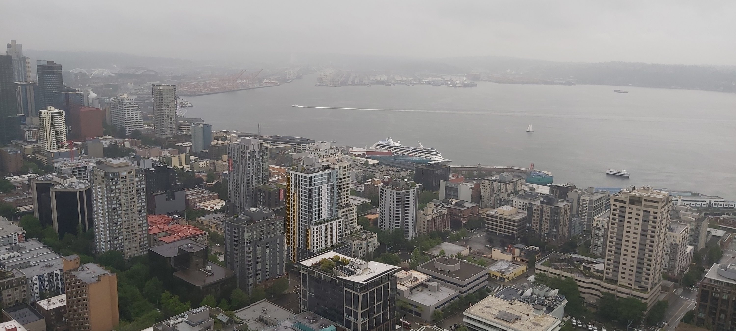 It didn’t take long to get fed up with forking out almost $40 for breakfast, perhaps spending $100 / day just to feed myself. Even my friends in North America would tell me I’m doing it all wrong on this trip! So today, I sought out a breakfast eatery patronised by the locals. A tub of gluten free oatmeal, a banana and decaff latte came in at $12.57 at Fonte just opposite the Art Museum. Now, to explore the Waterfront and see what cruise ships has arrived for the day. I walked from my hotel to the biggest Ferris Wheel on America’s West Coast. and got a decent overview of the city. This is situated by the Waterfront and almost opposite University Street, which now, later in the day, shouldn’t be hard to find. It’s a steep old climb back to the hotel if I walk back along the Waterfront.