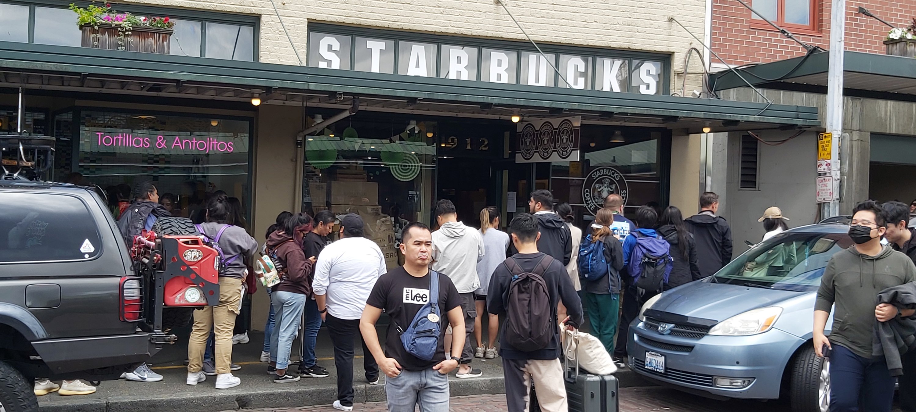 While in the area of where I bought said electric toothbrush, (no more bristly puns) I came across the famous market near Pike Street which was highly recommended I should visit. This was a brilliant way to pass those last few hours, and also receive a Christian blessing at an Evangelical rally, as well as support striking Starbucks workers! I also came away with (I assume) an original J.F.K. Inauguration Program, $1 in 1961, $90 today!