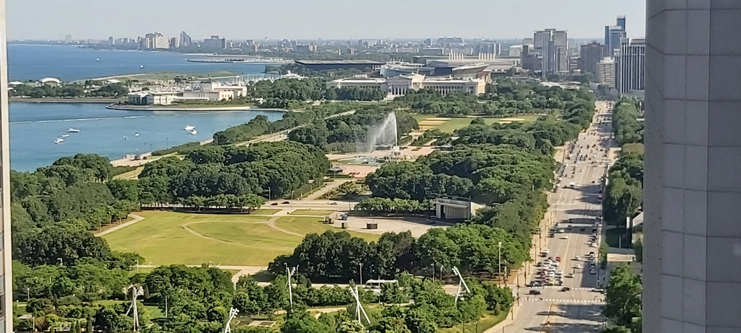 I found a taxi opposite Chicago Union Station and he sped me to the thirty seven floor Fairmont Hotel at Millennium Park. The reception lady very kindly upgraded me to a super room on the 28th floor with a fabulous view of the lake and park which I recognise from 1971! Ye Gods, 51 years ago almost to the month. I hadn’t realised that at this particular hotel, unlike at Toronto, Vancouver and Seattle, there is a $20 + tax Amenity Fee per day, not yet paid for. I protested somewhat at the reception, but was embarrassed to find that this had indeed been mentioned fully in the information pack sent by my excellent travel agent to my home, weeks ago! Humble pie in the Hotel restaurant won’t come cheap. The Fairmont did give me a very decent upgrade, and my room has probably the finest view of anywhere I have stayed.
