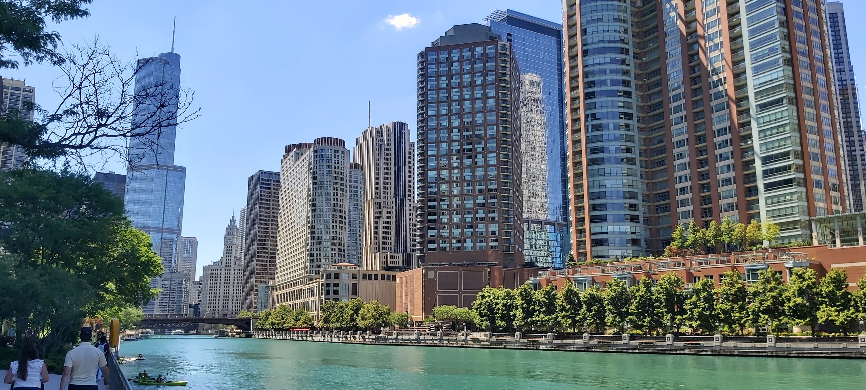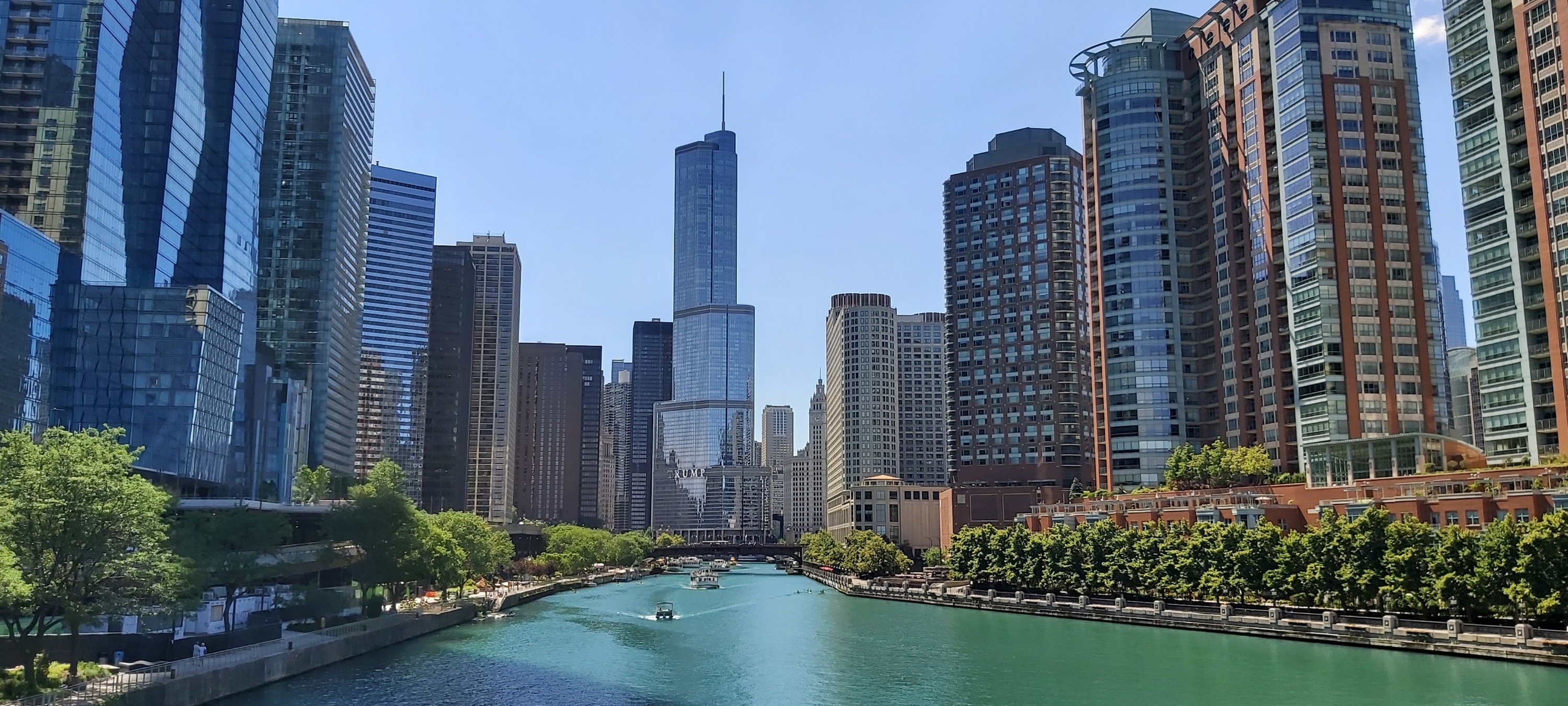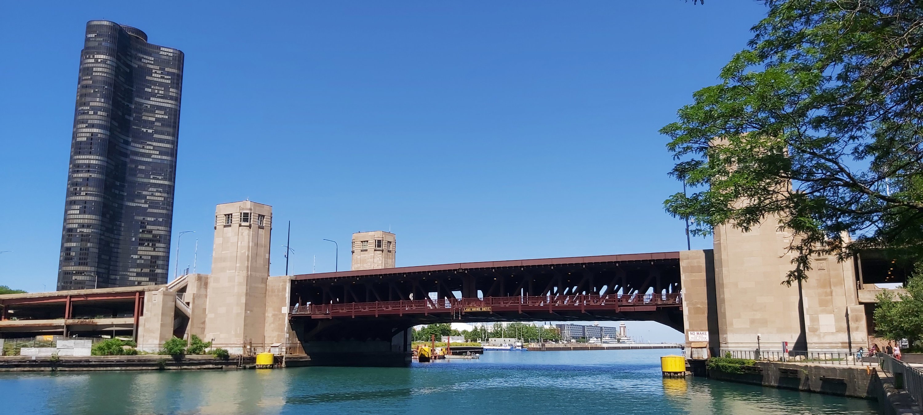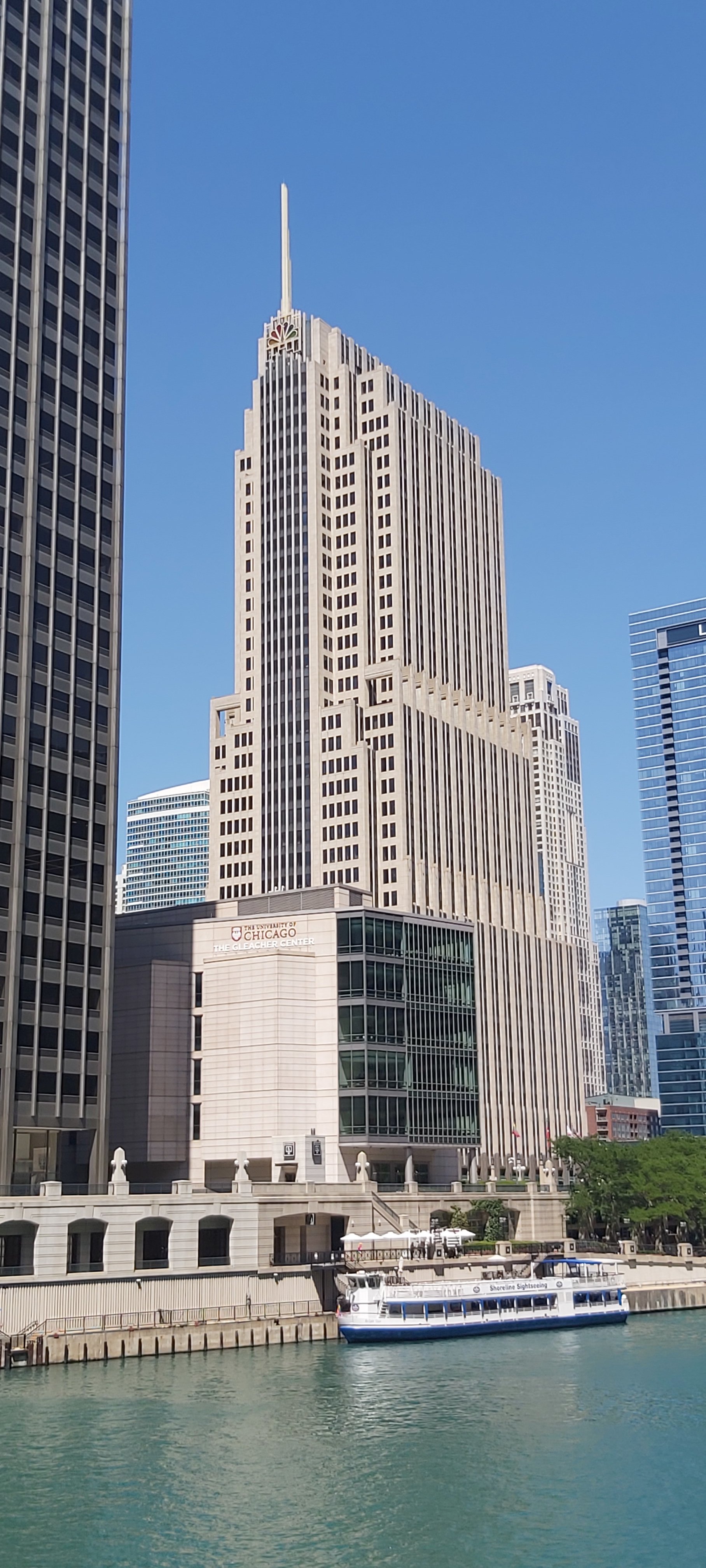 I took a river trip after a rather late breakfast, and enlightening natter with the Hotel Concierge. This boat trip is run regularly, several times each day, by the Chicago Architecture Foundation Center, with the excellent tour guide describing as many notable buildings as possible, complete with details of when built, who for, and the designer and architect etc. So many facts and figures in such a short time are, for me anyway, almost impossible to remember. I’m sure there’s a book on the subject, and there’s also Google. However, if I’m not mistaken, we went under 25 bridges, 4 of which were of two decks. The intense heat of the day didn’t detract, and taking a river cruise is a good way of seeing as much as possible, even if rather briefly.