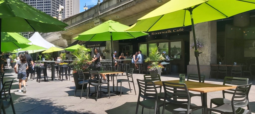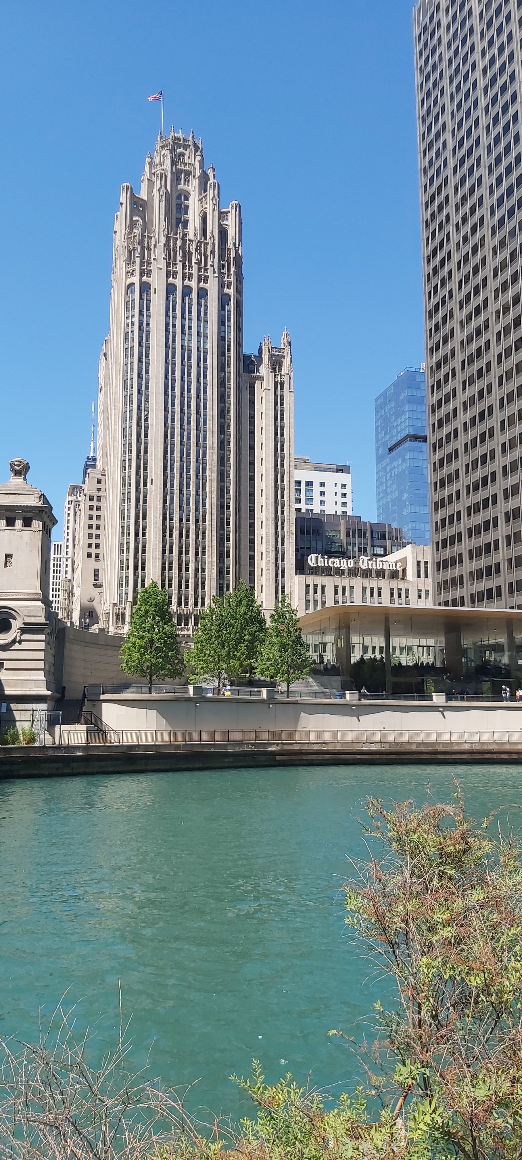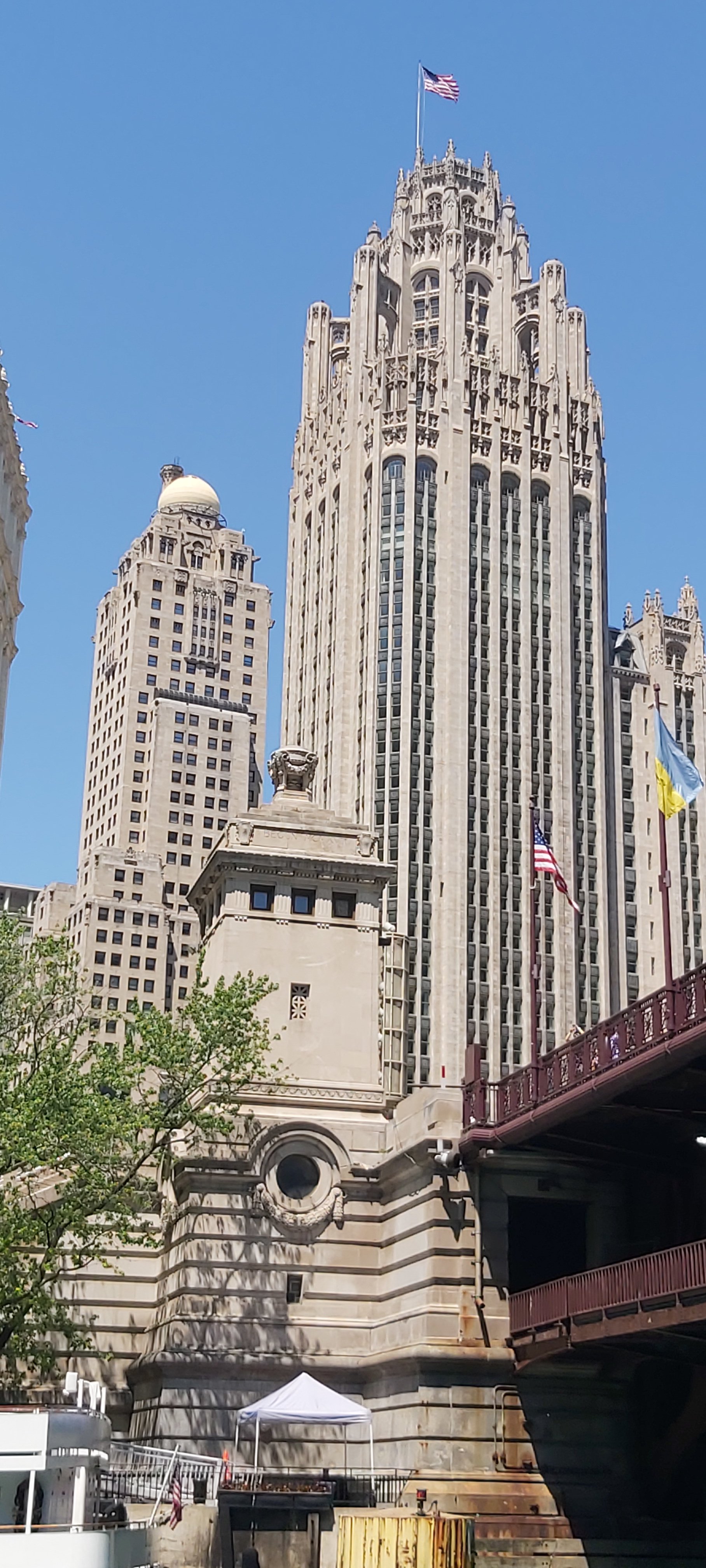 The restaurant I chose to have lunch at1The Chicago Tribune BuildingA couple of views along the Chicago RiverI would cross this bridge to continue walking to Navy PierView along the bridgeView from the bridge