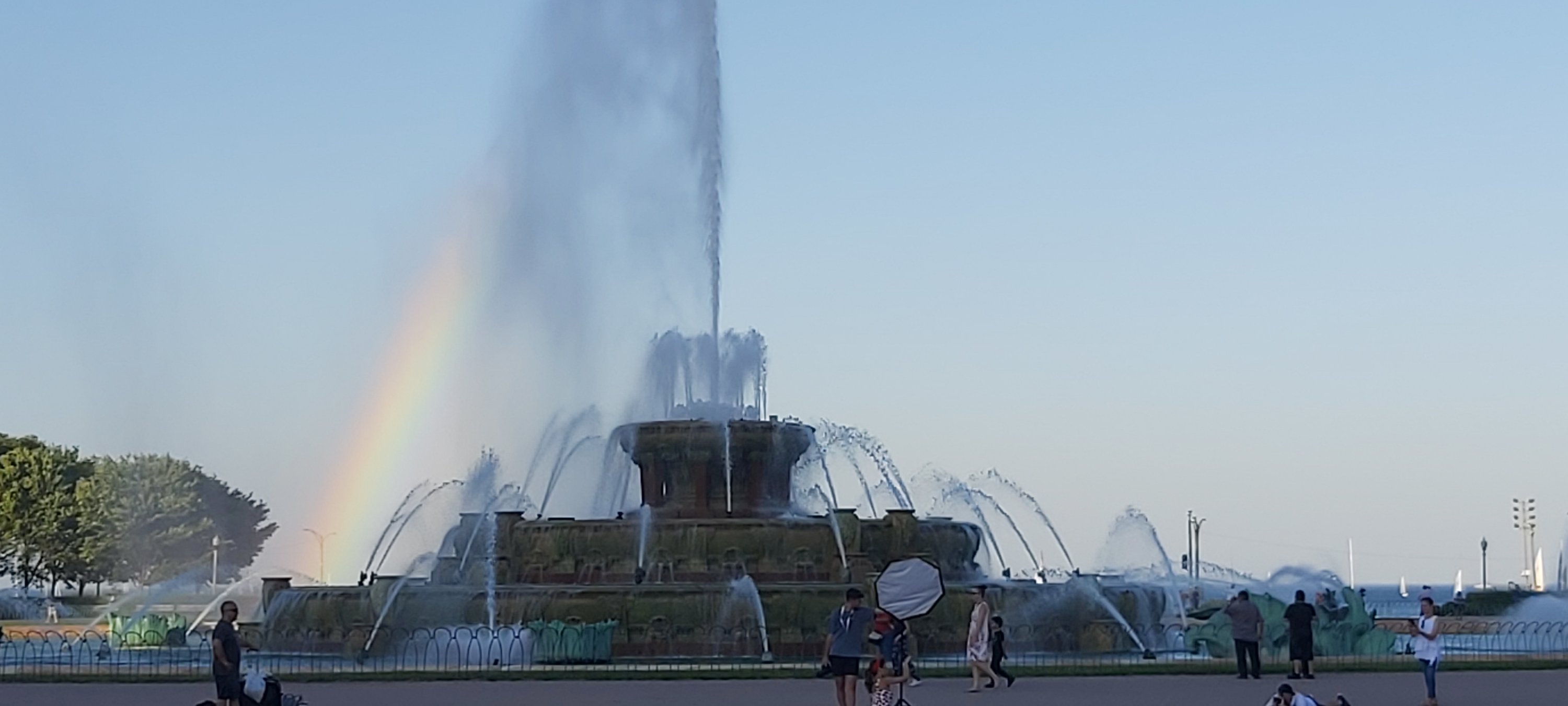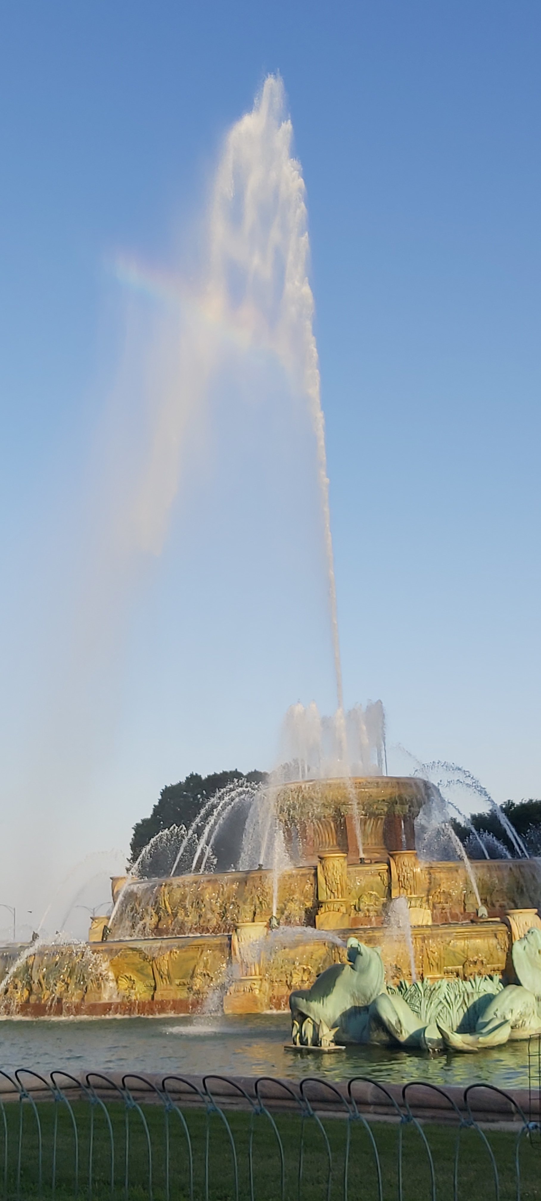 The Clarence Buckingham Memorial Fountain, complete with rainbow 🌈 Rainbow as the sun goes slowly down.Worth the Walk