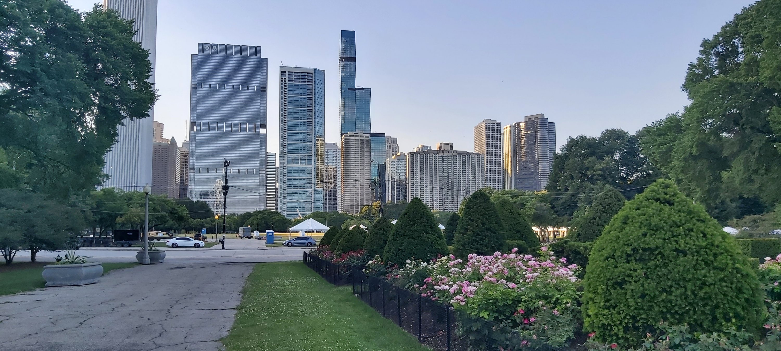 There’s much on offer at this Summer Festival. Chicago’s Millennium Park Concert Venue. Looking back at the Chicago skyline while walking to the Clarence Buckingham Memorial Fountain