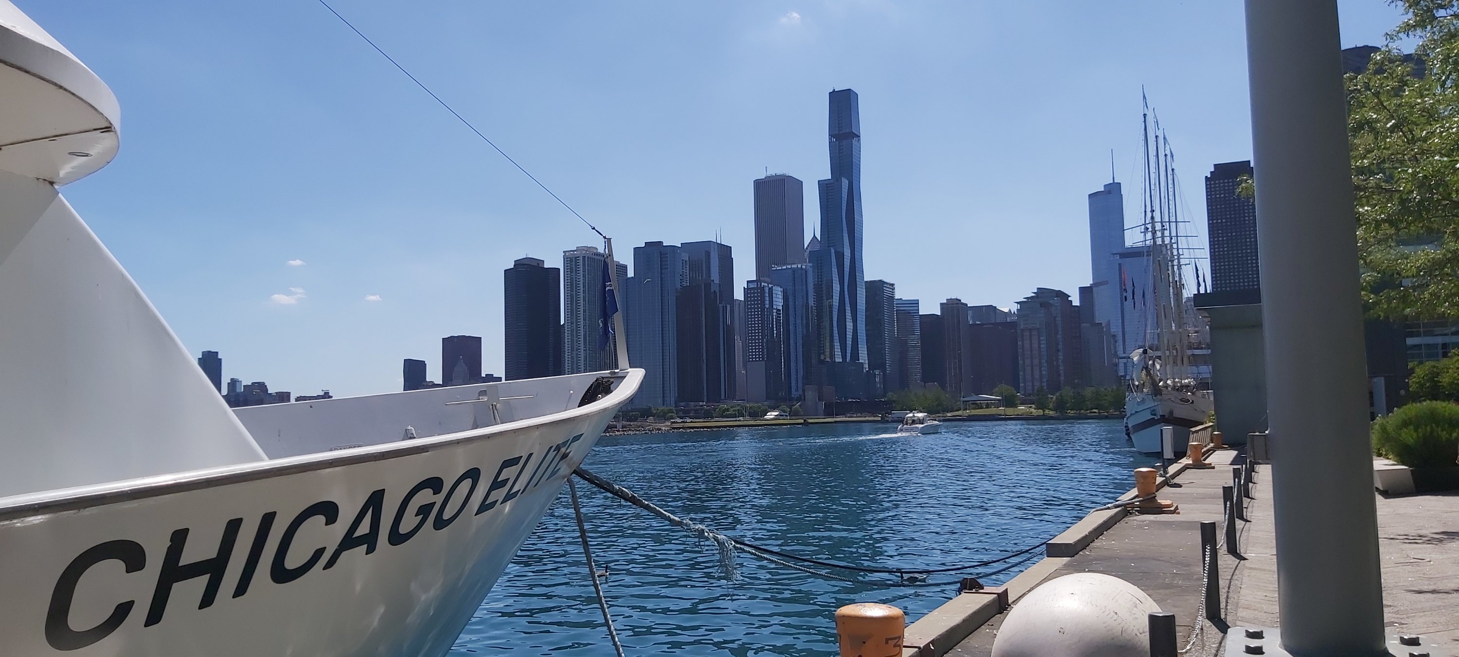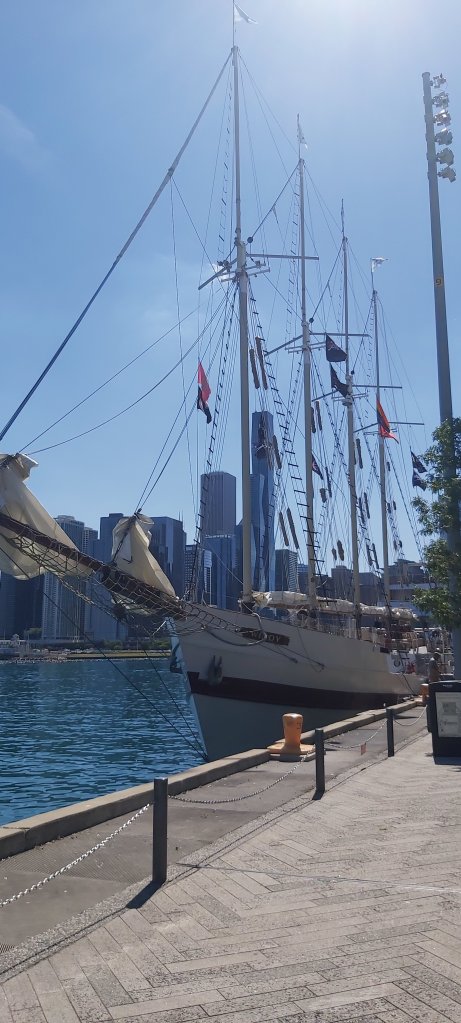I walked to Bus Stop 1 where a hop on/off bus was just about to leave. The intention was to go around the circuit, and then choose where I would like to see again, and stay awhile. This enabled me to see much of the city. At the end of the “circuit” I decided to embark on the River Walk first of all, having a very pleasant light lunch at a riverside restaurant. I decided to walk, ending up eventually at the highly developed resort of Navy Pier. I took many photographs as I went along; some are not bad, but none are like those in various brochures, no matter how hard I try and creative I think I am.