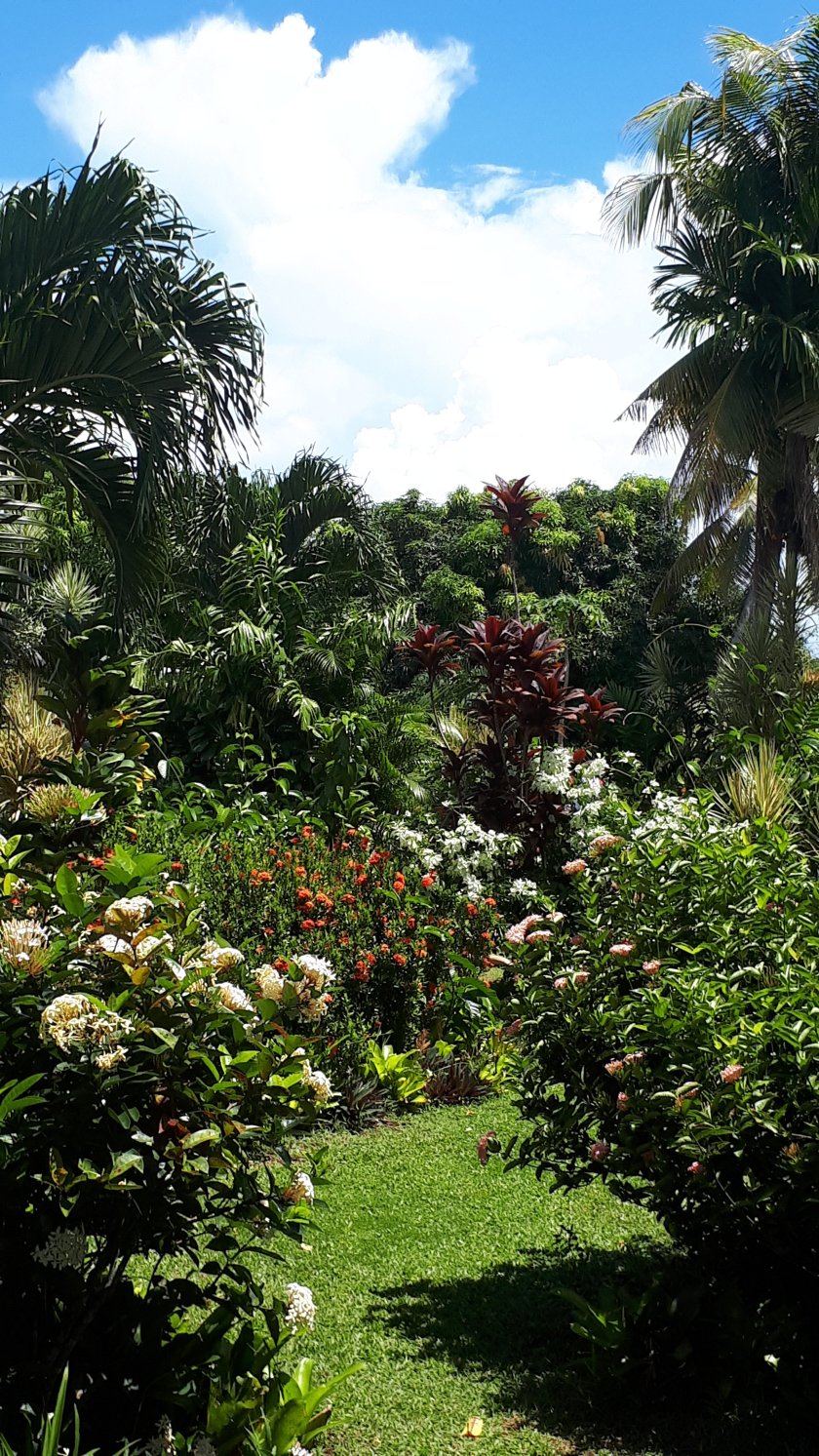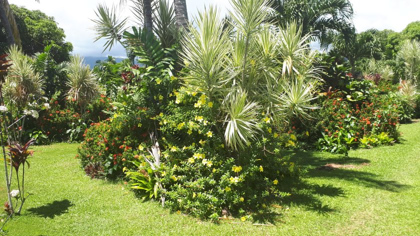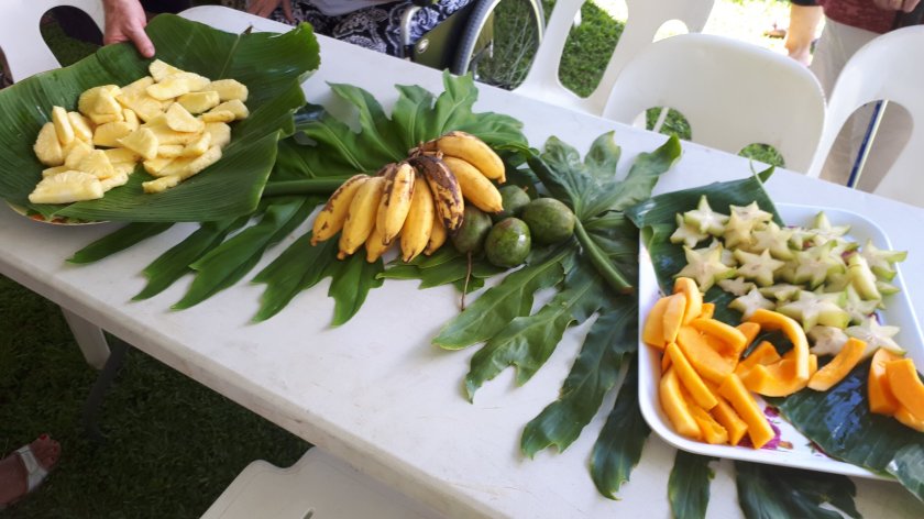 We were later served a selection of fresh tropical fruit at Gina’s Tropical Garden, a paradise setting of an acre or two of trees, plants, flowers and shrubs, “straight out of a National Geographic Magazine”. It’s hard to recall having ever been in a lovelier place.