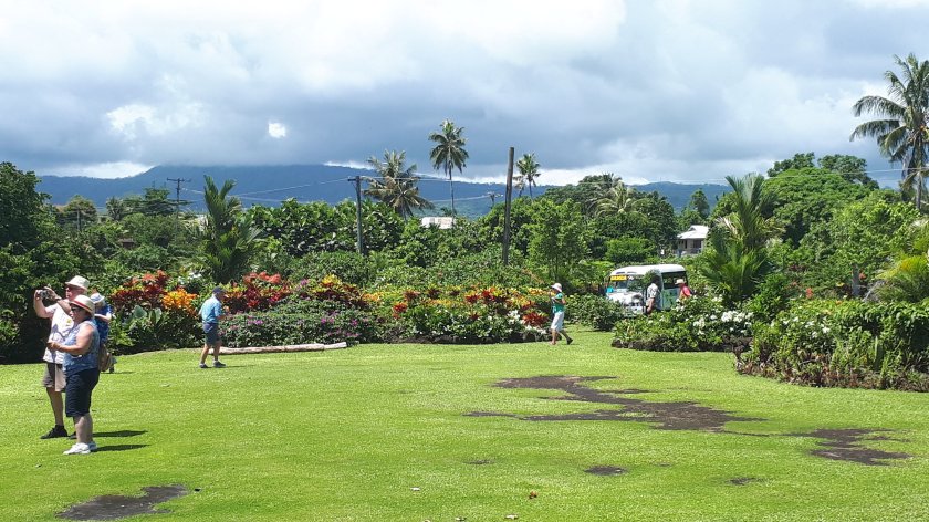 The tour guide on our 20 seater mini coach introduced herself by saying that a good day in Samoa is 29 degrees. A bad day is 42 degrees! I am told it got up to 42 degrees Celsius today. Yet, I was comfortable for most of the time. Contrary to Cunard’s warnings, Samoa’ s fleet of mini coaches are modern and air conditioned. I think around 6 were used on our tour, “Coastal Villages and Tropical Gardens”.