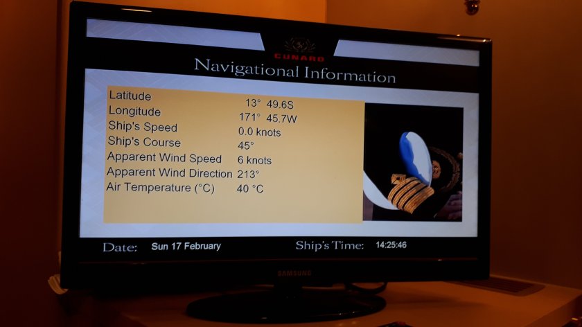 Yesterday, at Tauranga, weather-wise was a bit of a wash-out. Inclination to explore after a “typical” shore excursion was none existent. So, I retired to my stateroom for a while and watched episodes of Coronation Street, Tipping Point, and Celebrity Chase, which I can dull my brain with at home…. in Tauranga! I suppose there was a novelty there somewhere.