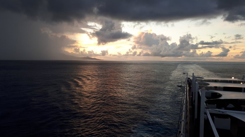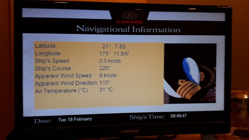 Day 20 All day yesterday, in and around Tonga, the sea seemed very still indeed. There was some activity which did make the bore holes worth visiting at the end of yesterday’s shore excursion. But, as we headed out to sea from Tonga, there was the occasional tell-tale nudge of the turbulence to come.