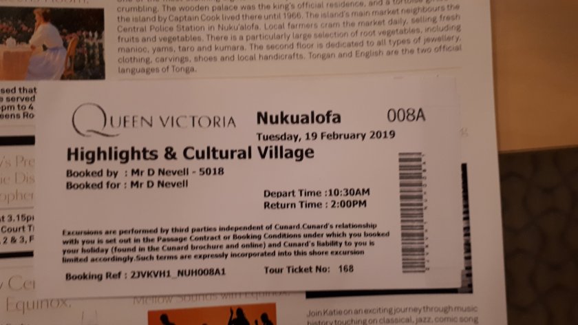 Nuku Alofa, Tonga, was our port of call today, as we entered another Time zone, bringing us 13 hours ahead of GMT. At home, it is 3.20am!