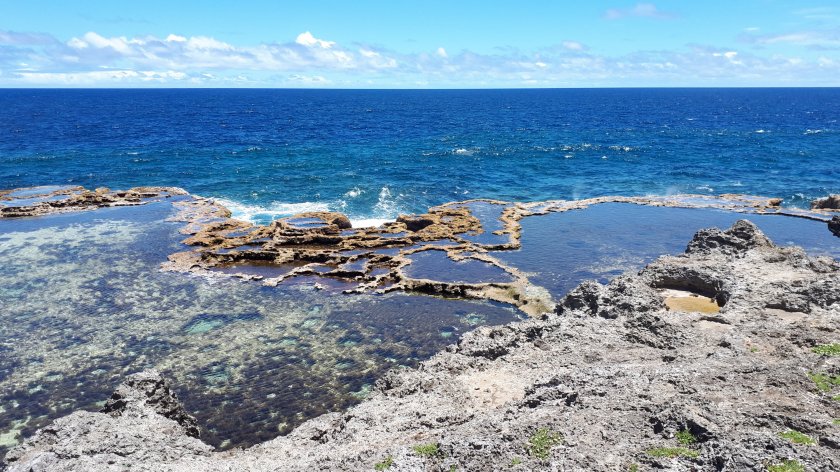 Again, having not visited previously, I availed myself of one of the shore excursions on offer, in the correct assumption that I would see more of the island on one such excursion. I don’t think I was wrong. And the buses are “fantastic”, possibly late 60s and ‘held together’. No air-con and no P.A.- perfect! A photo opportunity was provided at the former Royal Palace. Soon, we were travelling through the flat rural palm tree clad countryside. A cultural demonstration of traditional dance, local custom and way of life was held in large barn type structure seating almost 200. This may have been somewhat “touristy” but nevertheless it was very interesting and informative, worthy of much video. We were at this cultural centre for almost an hour and three quarters. The grand finale after more journeying through this tropical countryside, were, the bore holes where the sea is funnelled into rock formations, creating intermittent “fountains”. We were given just five minutes, but I think a quarter of an hour elapsed before we were on our way back to the ship. Wave activity was, I guess, moderate, but I did manage to capture some spectacular “crashings of the tide” during this all too brief stay.
