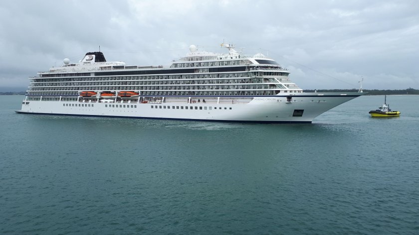 4) Visiting cruise ship Viking Orion arriving at Tauranga after we had completed we had berthed. It would be tied immediately behind MV Queen Victoria.
