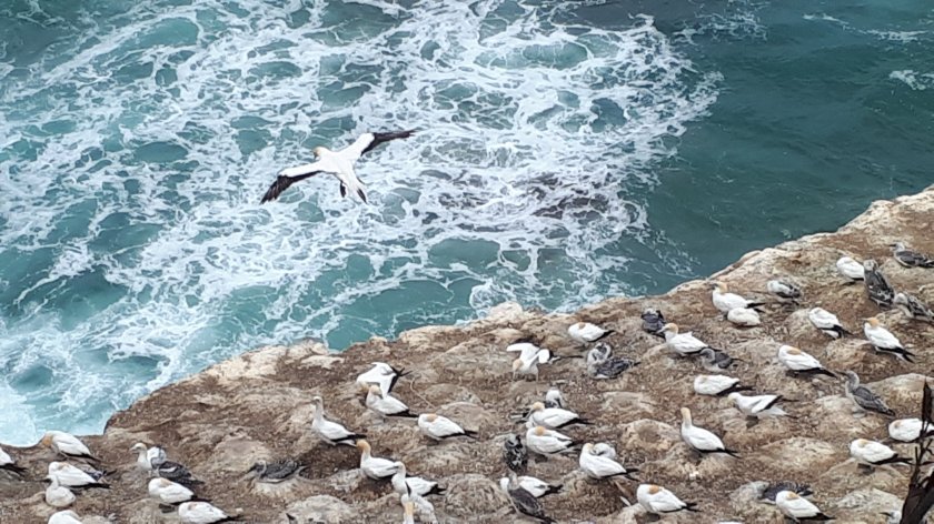 There were plenty of empty seats on one of New Zealand’s finest coaches. I was comfortable, and extremely content with yet another driver/guide whose commentary was interesting, informative and not intrusive. We journeyed into the loveliest of NZ countryside, to one of the most spectacular viewing points I can remember, overlooking rugged cliffs and seashore, where lived a huge gannet colony. This was an ornithologist’s paradise. The pictures to follow, should be self explanatory. We continued to a massive and idyllicly set self sustaining farm, complete with fallow deer, which is visited regularly by tourists and cruise ship passengers. But, it is far from “touristy”, and I enjoyed enormously a wonderful day out. I presume the superb lunch was from food produced at the farm.