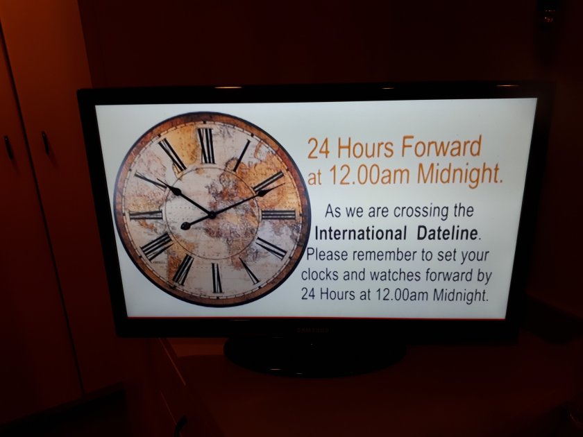 This morning, according to Captain Connery in his Noon address, we crossed the International Date Line (I.D.L.) at 06.47.