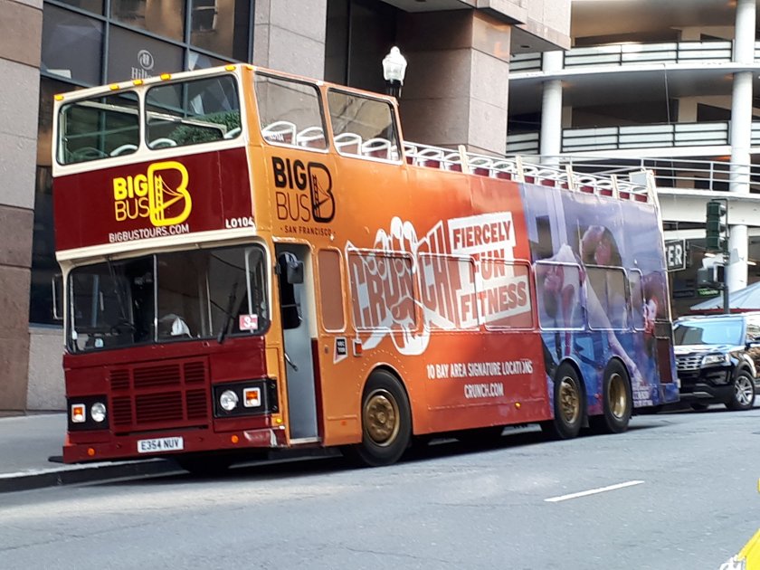 1) One of San Francisco’s Big Buses which provide hop-on/off services throughout the day. Note the number plate indicating its British origin.