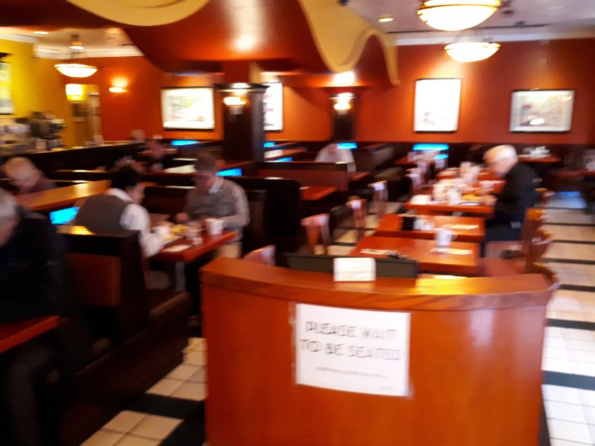 Ken and Eileen invited me to join them for lunch today. We met outside the Britannia Restaurant. When I boarded the Coast Starlight at Los Angeles Union Station on 4th February, little did I know that the couple in the seats in front were, not only joining the QV two days later, but were also booked for the 49 night Queen Elizabeth voyage from Vancouver via Alaska, back to the British Isles. Today is their second wedding anniversary. Unbelievable coincidence, that we should meet up during the journey on the Coast Starlight.