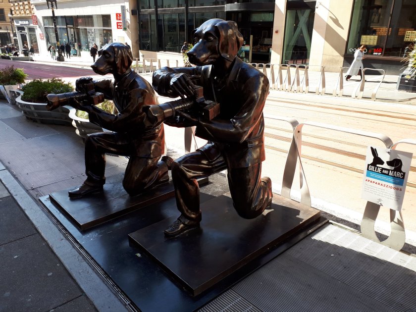 8) Sculpture of dogs taking photographs, on Powell Street.