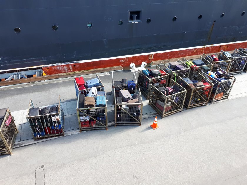 Check out at the ultra plush Hotel Nikko confirmed I had no outstanding payments, and my bank account would be re-reimbursed accordingly, in around ten days. I took “farewell” pictures in and outside the hotel, managing a brief video of a cable car on Powell Street. All too soon, it was time to collect two pieces of luggage and a couple of “carry-on” bags from where some of them had been left at the hotel during my visit to Long Beach. It’s, surprisingly, a fairly long drive from downtown to Pier 27, from where Cunard’s Queen Victoria will sail, eventually to Southampton. “All aboard” time is 7.30.