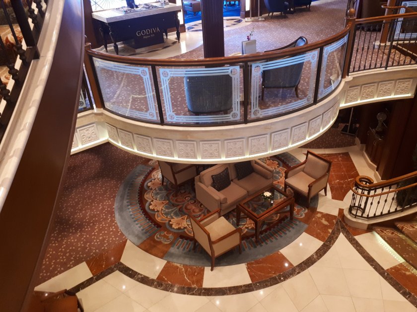 Cunard’s Queen Victoria (QV) is vastly different to its flagship sister, Queen Mary 2 (QM2). It is of similar design to some of Holland America’s cruise ships. I do like the interior lay out, and I can see why people prefer QV to the flagship QM2. The Lido, (QM2’s Kings Court) is a much better casual eatery than its flagship’ s counterpart. QM2, has in my view, a much greater presence than its two sister ships, and is far less sensitive to the vagaries of the ocean. The Pacific, this morning, appears calm from high up in the Lido. However, there is light turbulence, nonetheless, and certainly, when I retired for the evening last night, the ship “bounced around” somewhat. There are interesting interiors which I shall illustrate as this Pacific crossing from San Francisco to New Zealand and Australia progresses.
