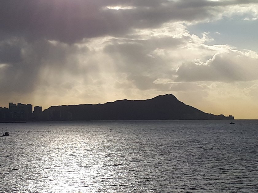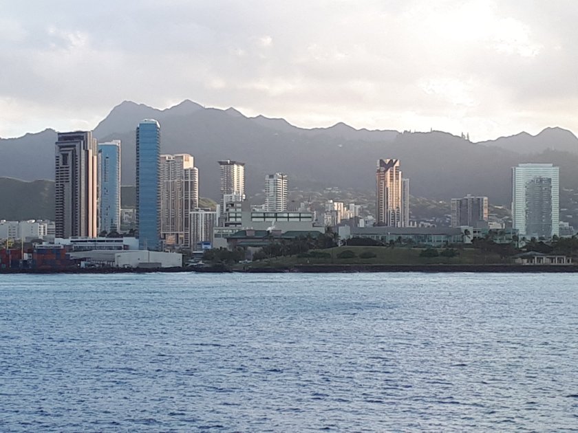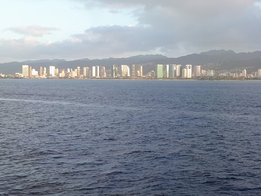 The least said about last night, the better. The seas were, I believe, the worst to date in the Queen Victoria 2019 World Voyage so far, as severe storms lashed accross parts of Hawaii. Today, approaching Honolulu has been glorious, the rain, forecast, having fallen prematurely the day before. Yes, yesterday afternoon and evening was dismal and bumpy to the point of being funny!