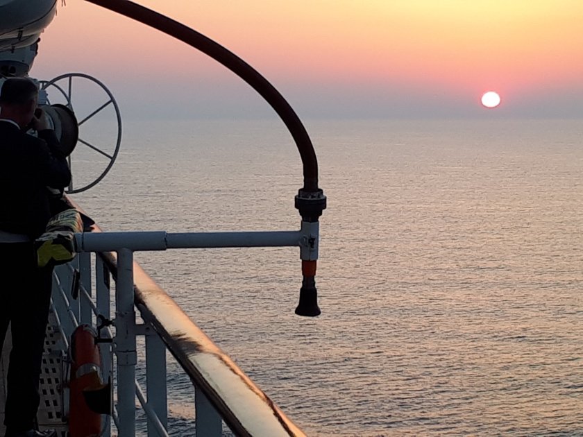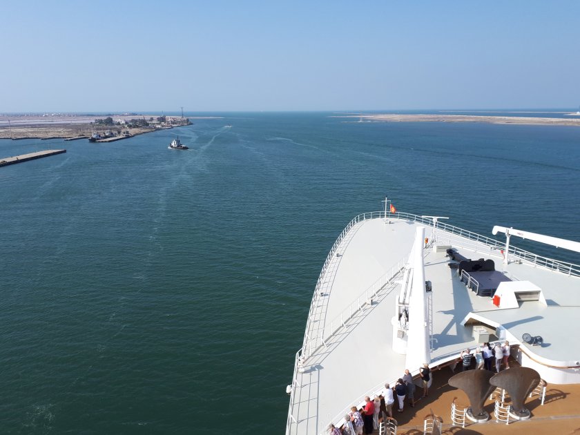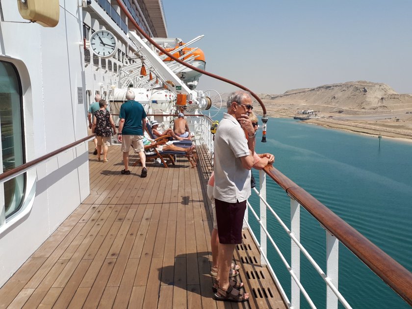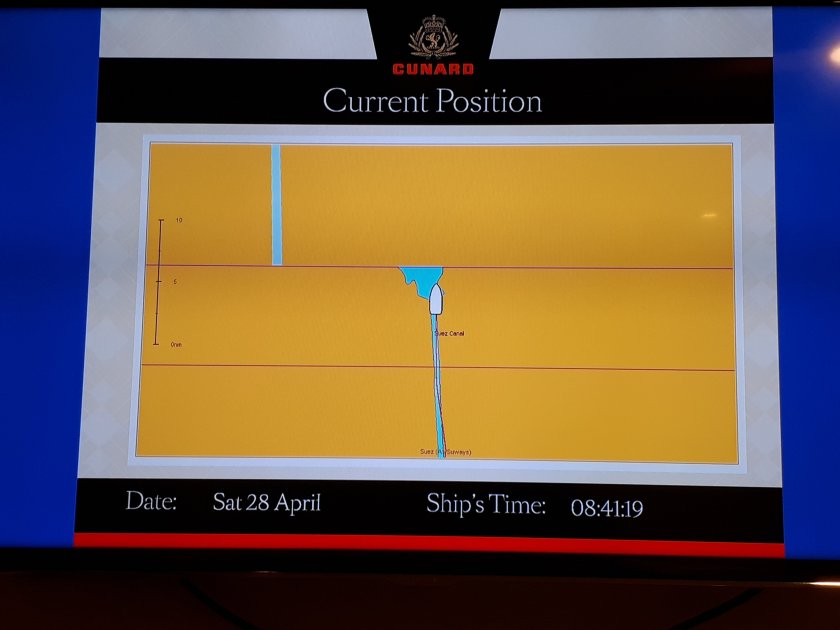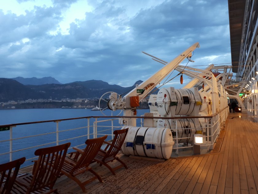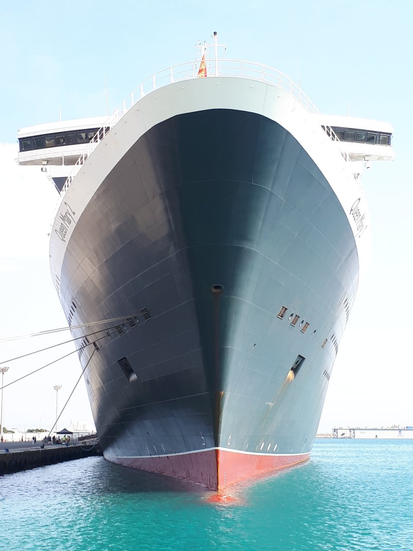 Where has the warmth gone? Unbelievably, those heady temperatures we cherished in the Far East and elsewhere are being enjoyed back home in the U.K. Twenty eight degrees Celcius is forecast for the South East while we on board Queen Mary 2 in the Mediterranean grudgingly are now grateful for anything above 18 degrees. Today as we sail for Cadiz, the final port of call before Southampton on Thursday, the sea is calm and sparkling as the sun is reflected off the wavelets below.