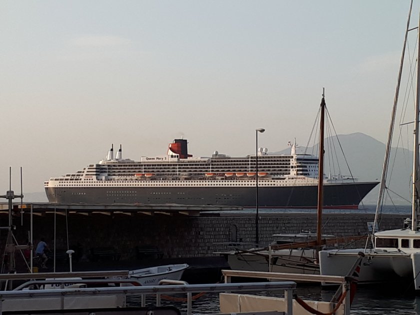 Yesterday, we called at Barcelona from where in November 1997, I crossed the Atlantic for the first time to Miami, on Royal Caribbean’s nearly new “Splendour of the Seas”. I had reached Barcelona by train from Buxton, via London, Paris, and Montpelier, and, at that time, this was the holiday of a lifetime. Barcelona now has three new cruise terminals and yesterday no fewer than four cruise ships were in port there, QM2, Britannia (P&O), Aida Stella (I think) and a huge Costa vessel. On our excursion to Montserrat, there was a spectacular view from the coach of all four ships as our journey started.