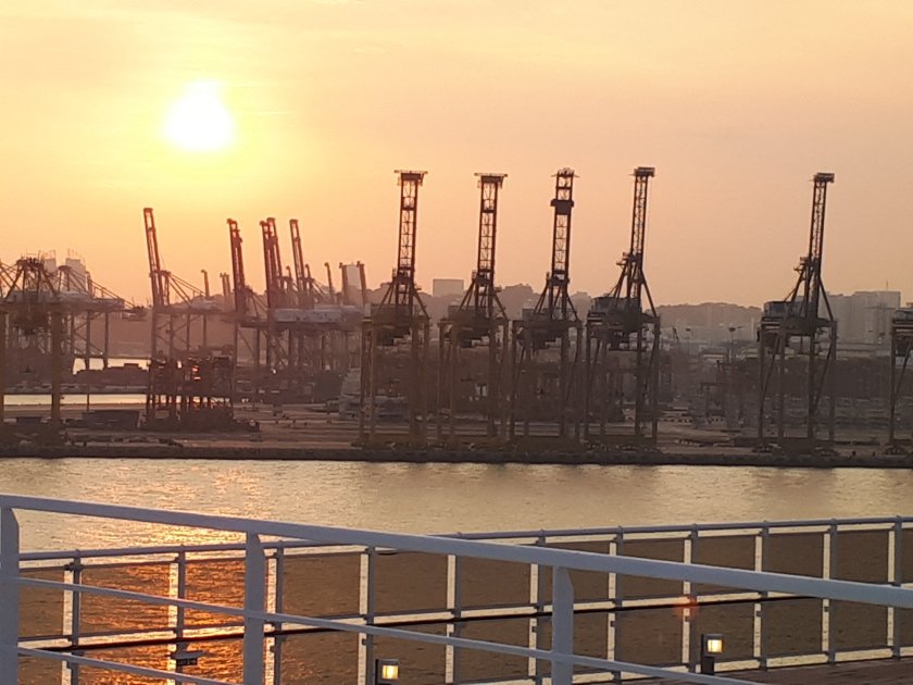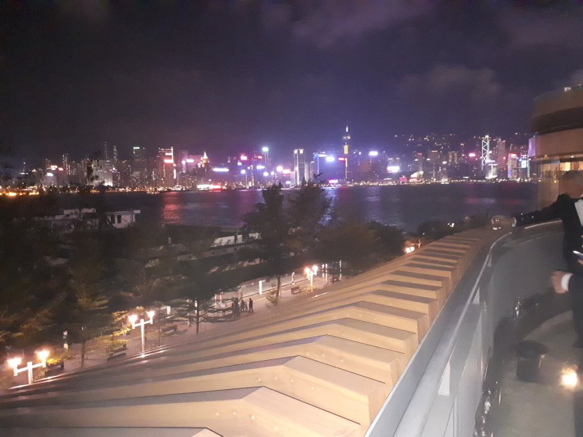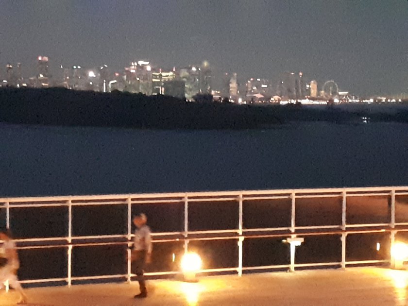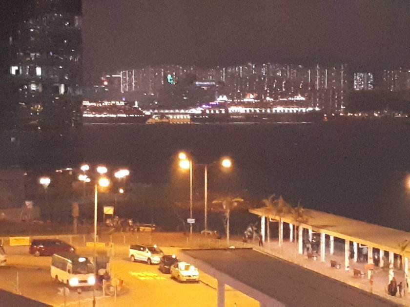 Yesterday evening, the departure from Hong Kong, as the sun set, and the light gradually faded, was magical. At the stern on deck 8, the band played and some people danced. I had seen nothing like it, and was thrilled, particularly with the crescendo of lighting from the forests of high-rises as darkness fell.