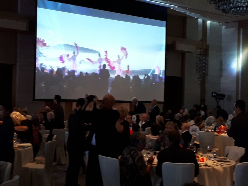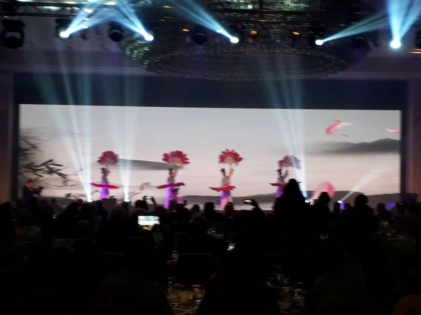 I am told that around 1,000 attended this grand event. The dinner was preceded by a reception which spilled out onto a terrace and garden which overlooked the water and a magnificent backdrop of hills and high rises which would gradually become illuminated as the sun went down.