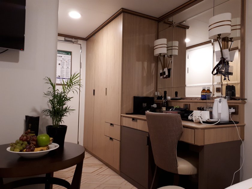 The Daily Programme for April 1st. Today, I continue my illustrated blog tour of the ship. My accommodation throughout the voyage is a recently installed Standard Inside stateroom on Deck 13. All that one needs is contained within the confines of the most economic double cabin available on QM2.