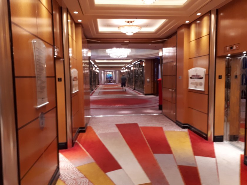 A general view towards the Grand Lobby from stairway C, just in front of the Britannia Restaurant.