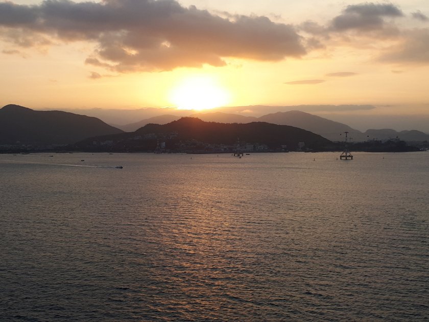 We covered much in the four hour excursion, but being a fairly early start, I felt tired and returned to the ship where I had the lunch described earlier in this blog. Later in the day, the sun went down and as darkness gathered, three long blasts on the ship’s horn heralded the start of our return to Singapore where we arrive three days from today. And as darkness fell on the now distant Nha Trang, buildings would gradually light up, a distant leisure park would spring to life and once again the sail-away would be magical.