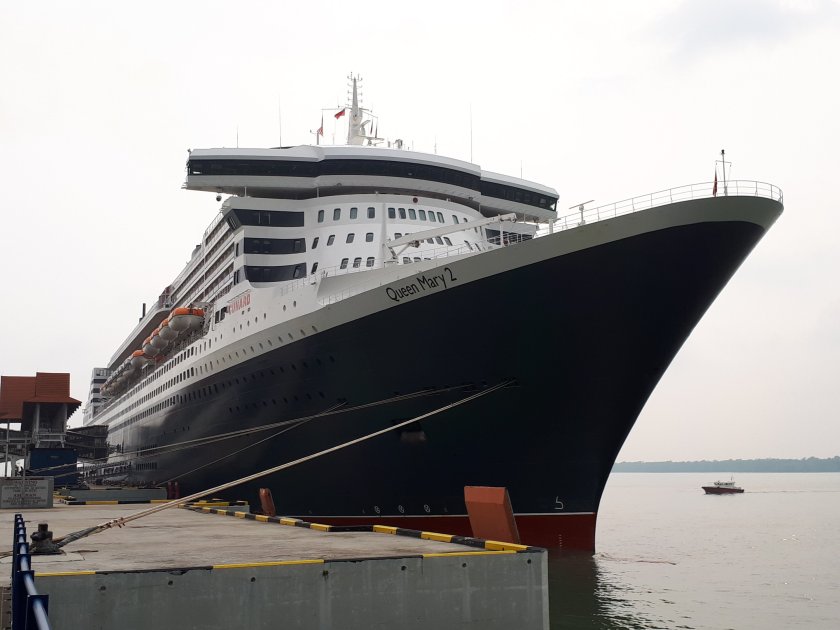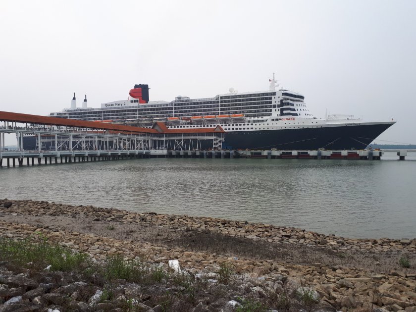 Just after 12.30am 7/4/2018. Yesterday was the second of five consecutive port days. The first day was our second call at Singapore. This time we docked at Port Kelang, around 90 minutes by coach from/to Kuala Lumpur. The brochure describes the journey as scenic. Hardly! I joined yet another Cunard organised excursion. We paid the briefest of visits (30 minutes) to the National Museum. We then stopped by the Railway Station and Administrative Headquarters which was next door to the National Mosque. Just as some of us were debating whether we would be granted entry to the latter, given our summer clothing, we were ushered back on to the coach. An opportunity was provided to photograph the Pretonas Twin Towers. We ascended the KL Tower for views from the glassed-in Observation Deck. Despite the haze, possibly of pollution, there were worthwhile views to be had from the KL Tower. An excellent buffet lunch was served at the Grand Seasons Hotel. A decent amount of time was later allowed at the Central Market. The previous threat of a thunderstorm was realised when we left the market. Thunder exploded and lightening streaked accross a leadened sky. But as soon as I turned on my camera to video this storm, the lightening became far less spectacular. Fortunately, none of our party got drenched! The journey back to the ship was uneventful albeit with a certain amount of congestion on the outskirts of the city. We arrived at the cruise terminal at around 5pm; I wandered off to take photographs, being accompanied discreetly by a member of the harbour personnel! QM2 departed Port Kelang shortly after 6pm while I was texting my sister from inside my cabin. I don’t know the temperature today; however it was extremely humid. Here are a few pictures:-