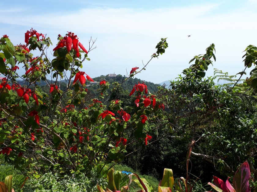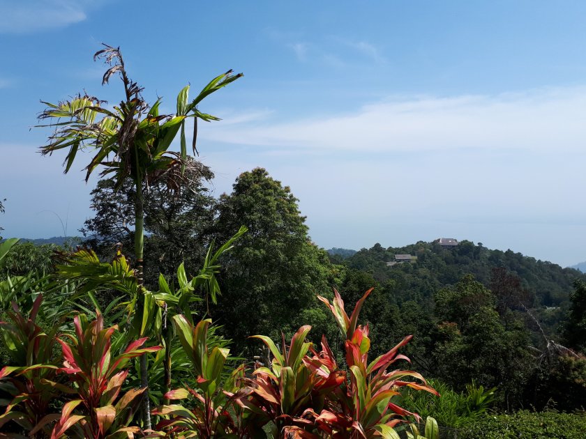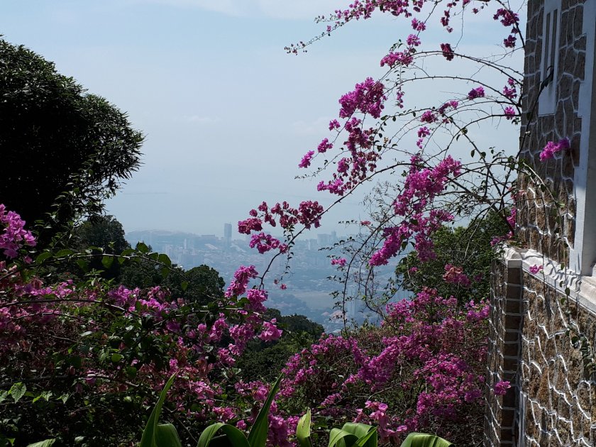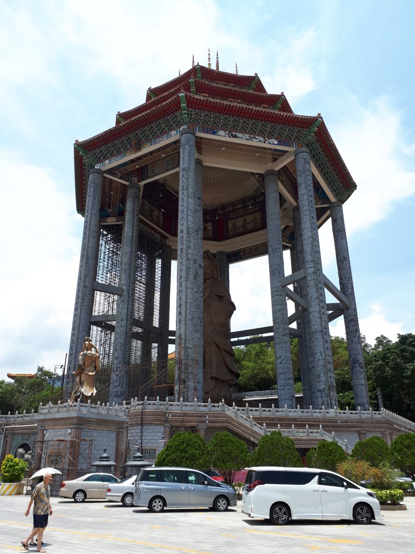 Today, I had no shore excursion booked, nor have I tomorrow when we dock at Langkawi, our final port in Malaysia. Yesterday’s trip to Kuala Lumpur was long. However, I did enjoy visiting another major city. At around 8am on the 7th April, (again, it’s just after midnight), QM2 docked at Penang. After a fairly decent sleep, I decided to try for a shore excursion after all. There were places available on my preferred choice “Penang Hill and Temple”. Quite why every journey to a destination is described as scenic, I fail to understand. We had a conducted journey to the base of Penang Hill from where we would take the funicular railway. We journeyed past residential areas, numerous retail and other roadside businesses in shacks, through the capital Georgetown; all highly interesting to see, but not what I would call scenic! However, the approximately 7 minute funicular ride to the top of Penang Hill, which I am told is 700 metres high, was extremely lovely. There was plenty to see and enjoy at the top, and wonderful colourful vegetation and superbly tended gardens. The city of Georgetown lay far below as if looking down from an aeroplane. The aptly named Belle Vue Hotel is up there; I could do with a week there during a future world tour. Eventually, we descended the mountain by the same way we ascended Penang Hill. Missing breakfast this morning, I had grabbed some cold meat and fresh bread from the Kings Court and made impromptu sandwiches. These were rather nice during the trip. We continued to the massive hillside Kek Lok Si Temple, the largest in Malaysia. This involved a long hike through and high into this “Temple of Ten Thousand Buddhas”. Eventually, another funicular railway would take us to the summit, again affording colourful roof top views to the city far below. There was an ornate pond at the summit which I read may be the Tortoise Pond of Longevity. (I am not sure). Eventually, we all met at the coach park part way up, and were taken back to the ship. I am told the temperature reached a magnificent 37 degrees Celsius today. The heat and humidity did “get to me” for a short while. It remains humid tonight.