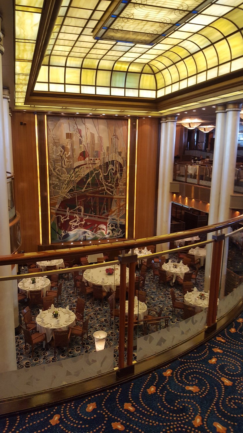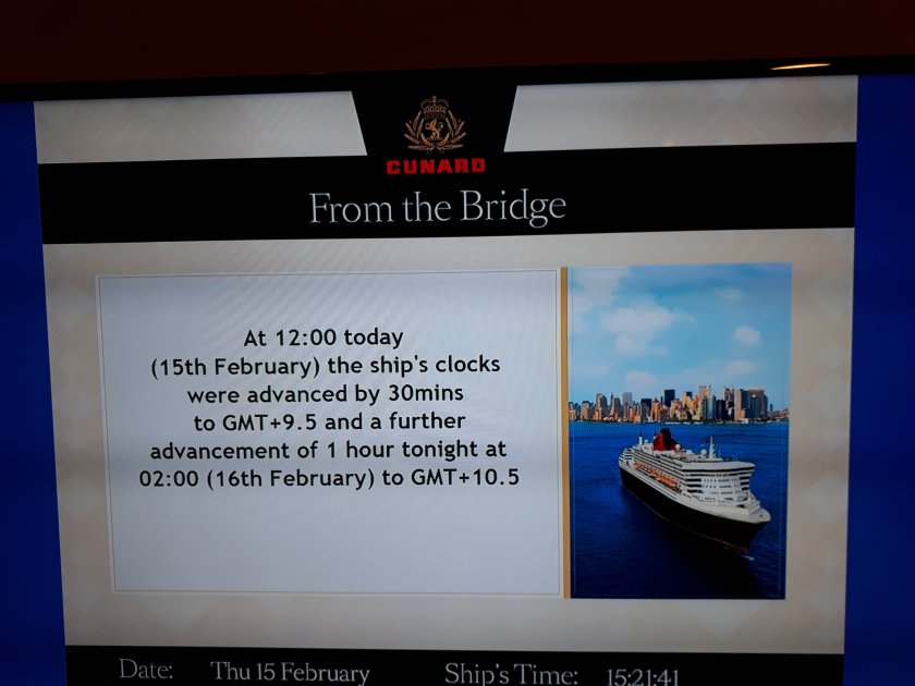 We arrived back at the ship at around 2pm. I had fish and chips in the Kings Court on deck 7. I then left the ship for a second time, made my way to the Eureka Tower, 89 floors for stunning views of Melbourne, albeit through protective glass which reflects anything near to it. I did manage a rare photo of QM2, Seven Seas Voyager and Spirit of Tasmania together at the port ofMelbourne, from the 88th floor of the Eureka Tower.