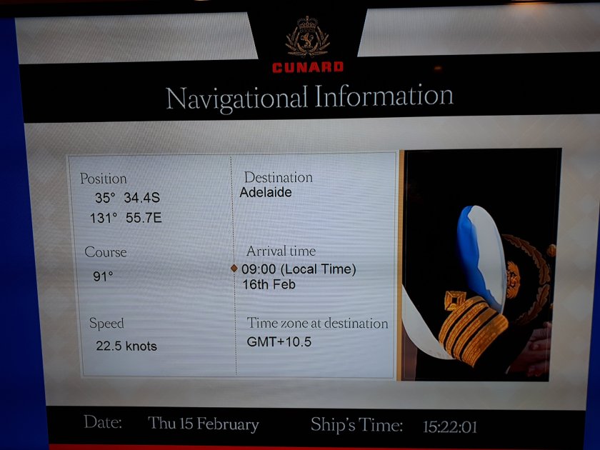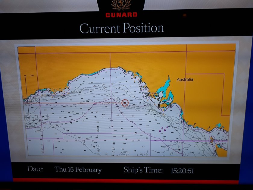 Today marks the end of our third long period at sea. Firstly, there were eight days between Tenerife and Namibia, four between Port Elizabeth and Reunion and a further seven between Mauritius and Fremantle. Thankfully, my medical issues which “took out” over three days of the last seven sea days are resolved and I am once again enjoying this remarkable voyage. Tomorrow, we arrive at Fremantle. This is the start of almost 5 weeks cruising around Australia and New Zealand, and I shall avail myself of the shore excursions at most ports of call in order to maximise the limited time available. Next year, I should have the opportunity for more “on my own exploration” on a return visit in February, reaching Sydney on the Queen Victoria and “winging it to my heart’s content”, thereafter.